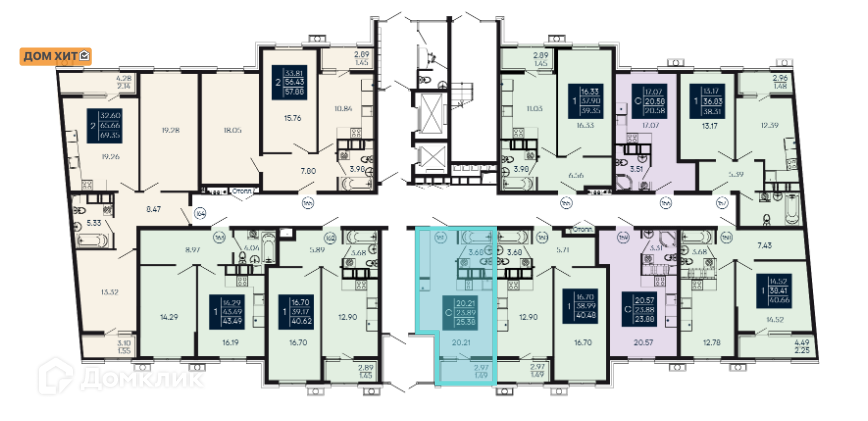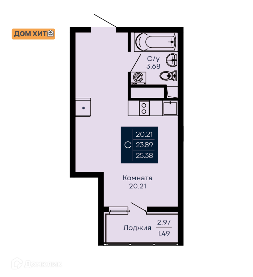 Общая площадь 25.38 м2
