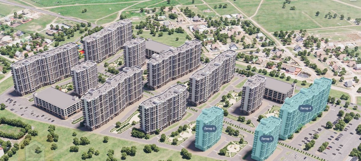3 четырнадцатиэтажных жилых дома с отдельно стоящим торговым центром и коммерческими помещениями.