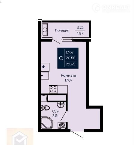 Общая площадь 22.5 м2