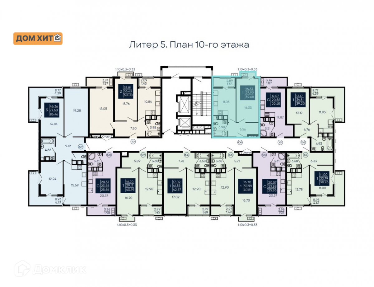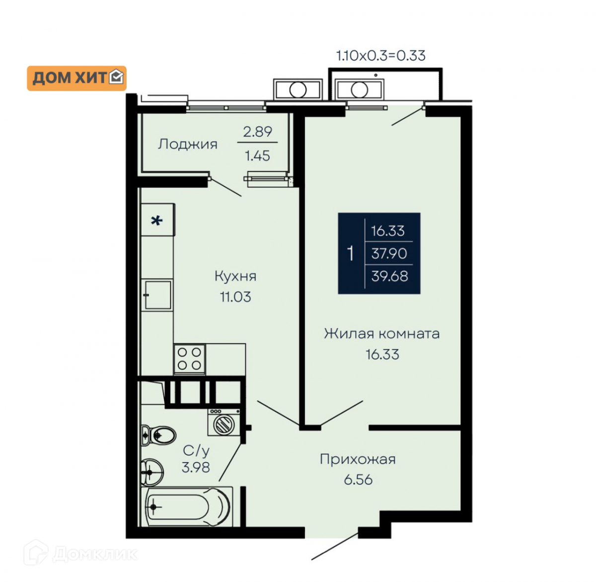 Общая площадь 39.68 м2