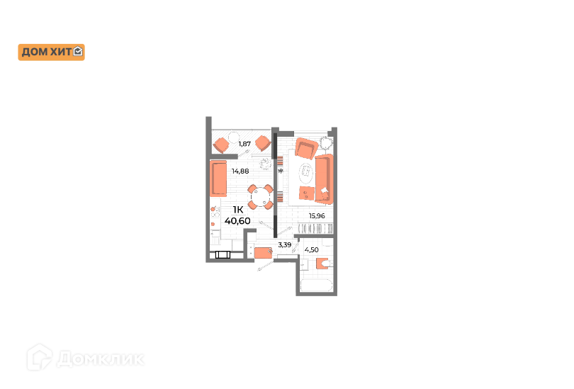 Общая площадь 40.6 м2