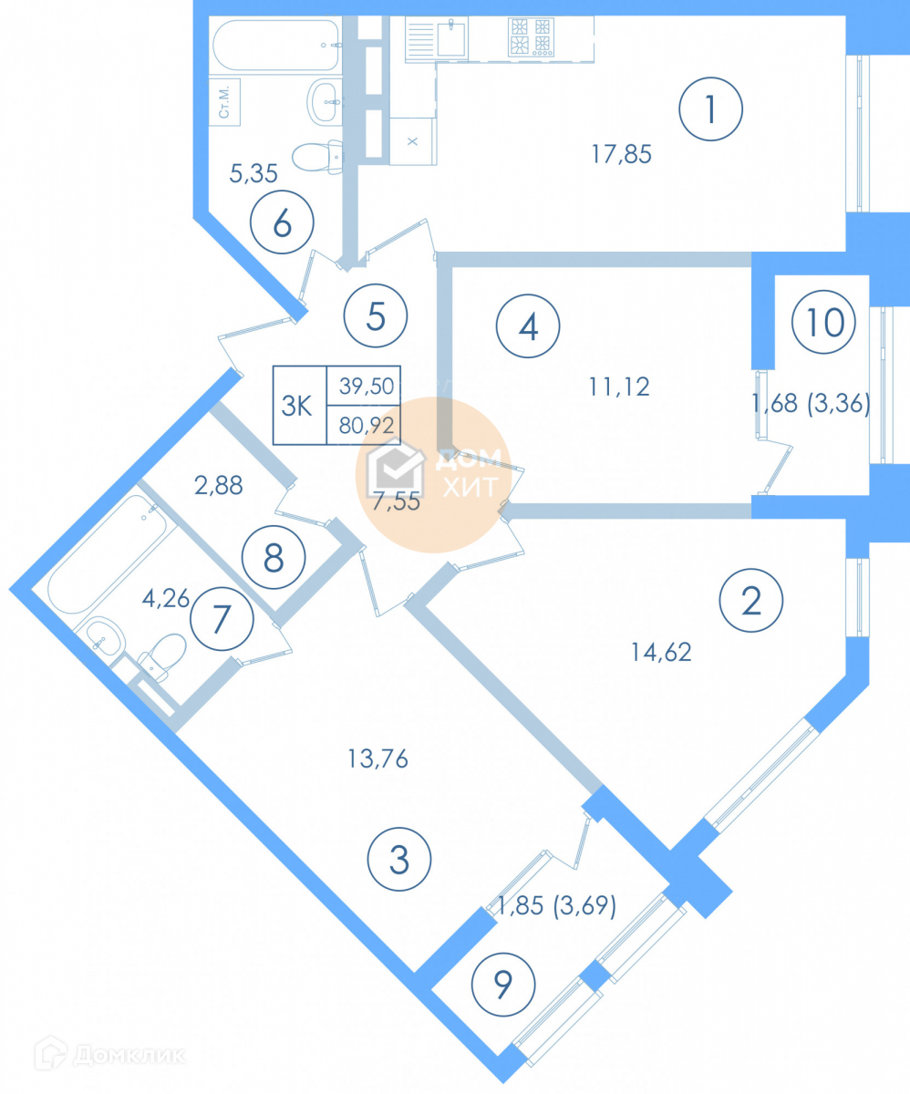 Общая площадь 80.92 м2