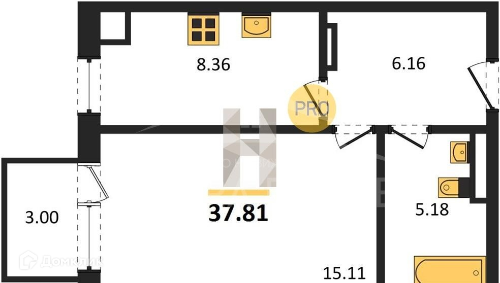 Общая площадь 37.81 м2