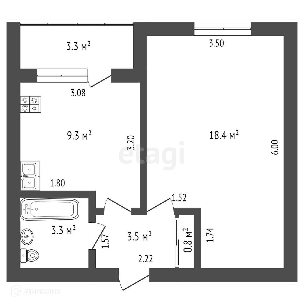 Общая площадь 28.5 м2