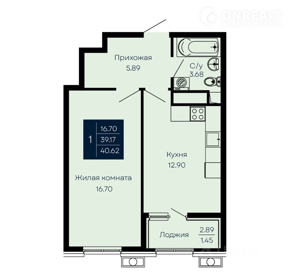 Общая площадь 40.6 м2