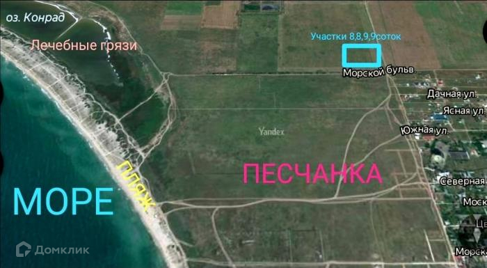 Участок ровный, прямоугольной формы без всякого мусора, пней и т. д.   Документы все российского образца.   Коммуникации все рядом.   Асфальтированная дорога меньше 600 метров по хорошей грунтовке. Евпатория - 10 км,   Уютное - 6 км,   Заозёрное - 2,5 км.   Море 1 км - идеальное место как для ПМЖ так и для сдачи в аренду на лето.   .  Код объекта 284124.