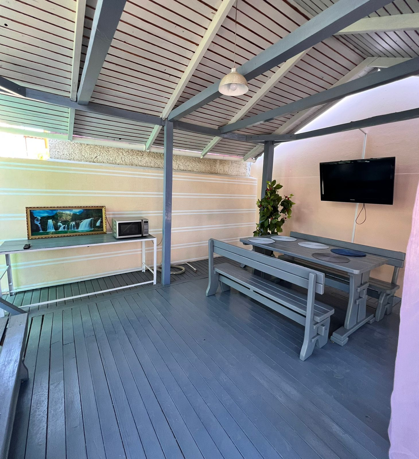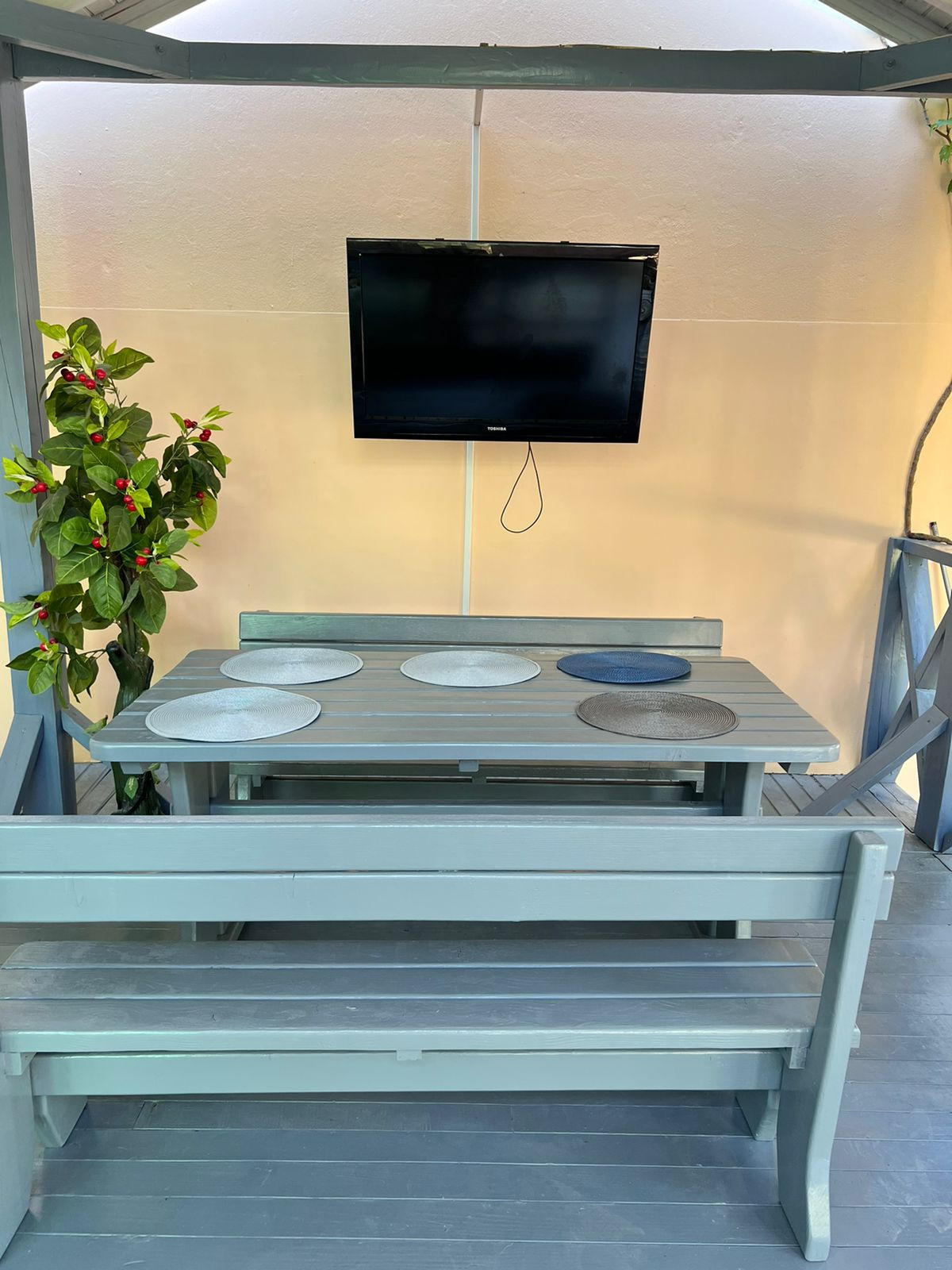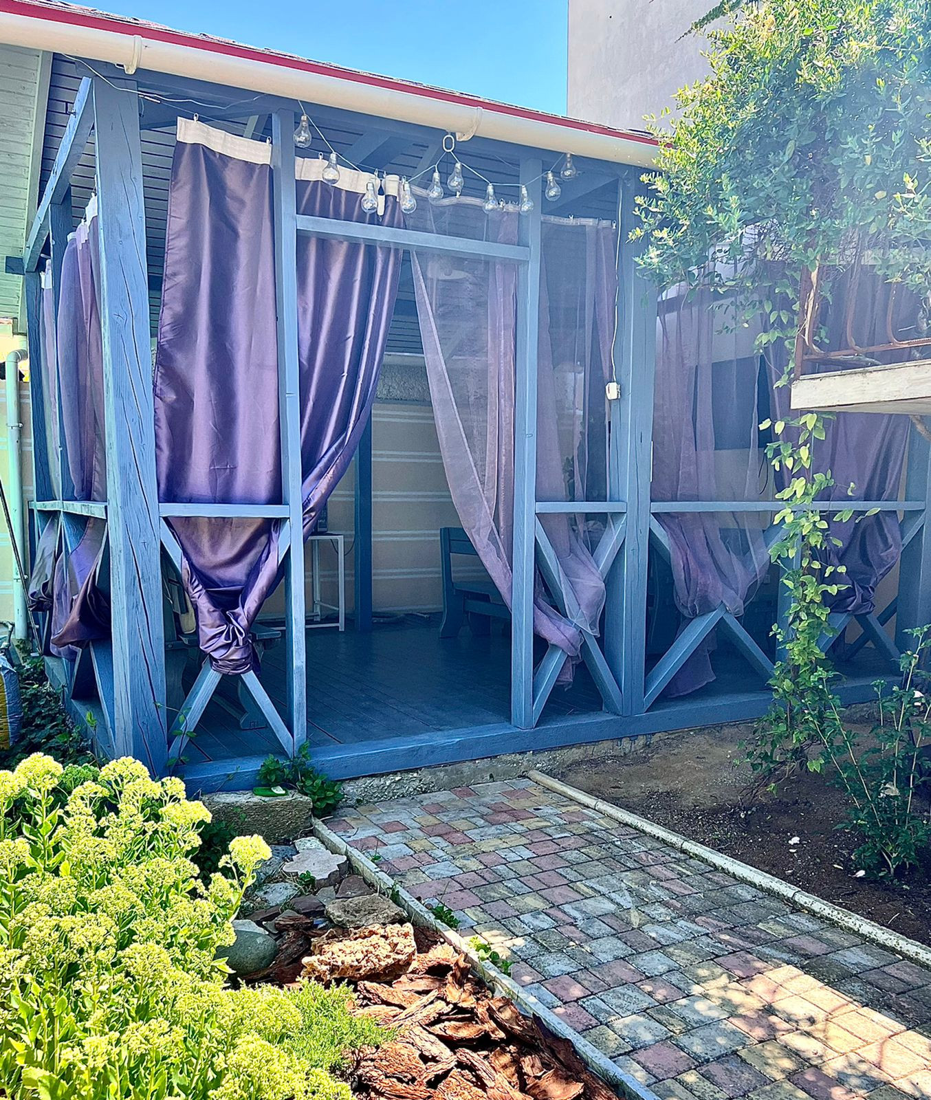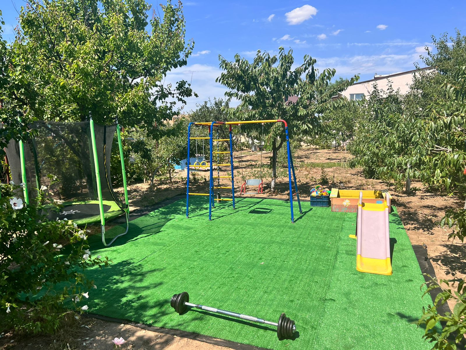 На территории нашего гостевого дома прекрасный зеленый дворик, мангальная зона бассейн и уголок для детей.