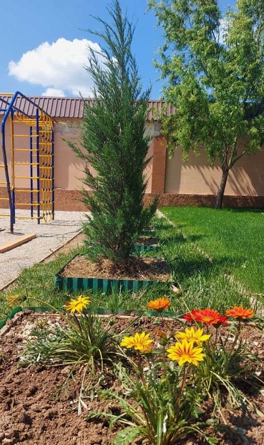 - детской площадкой с качелями,горкой,крытой песочницей.