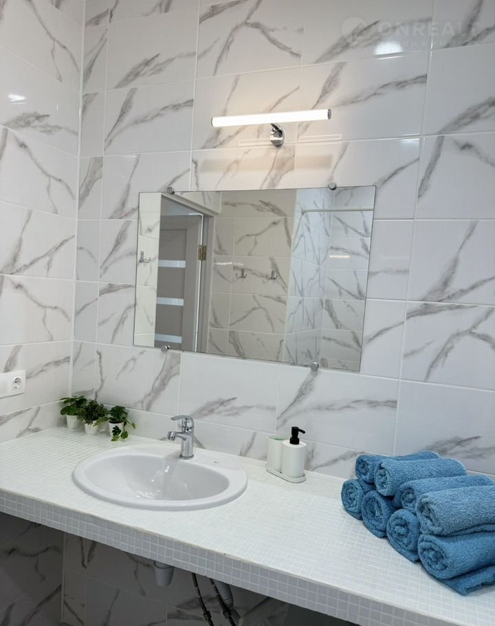 просторная ванная с душевыми кабинами и мягкими полотенцами