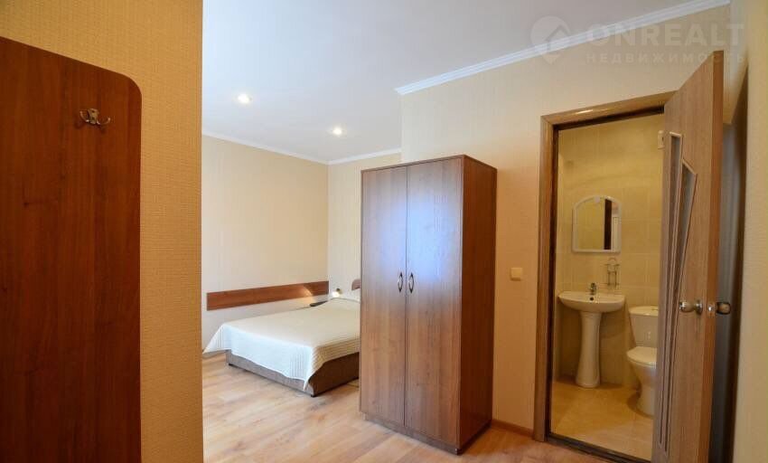 В комнате: спальные места(3-4 чел.),санузел, тв, кондиционер, холодильник, wi-fi. Площадь ~18 м.кВ.