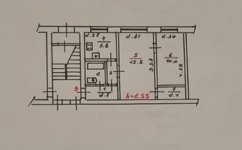 2-комнатная квартира, 41.4 м2, этаж 1 / 2, на продажу в посёлке городского типа Заплюсье, Спортивная улица, 3