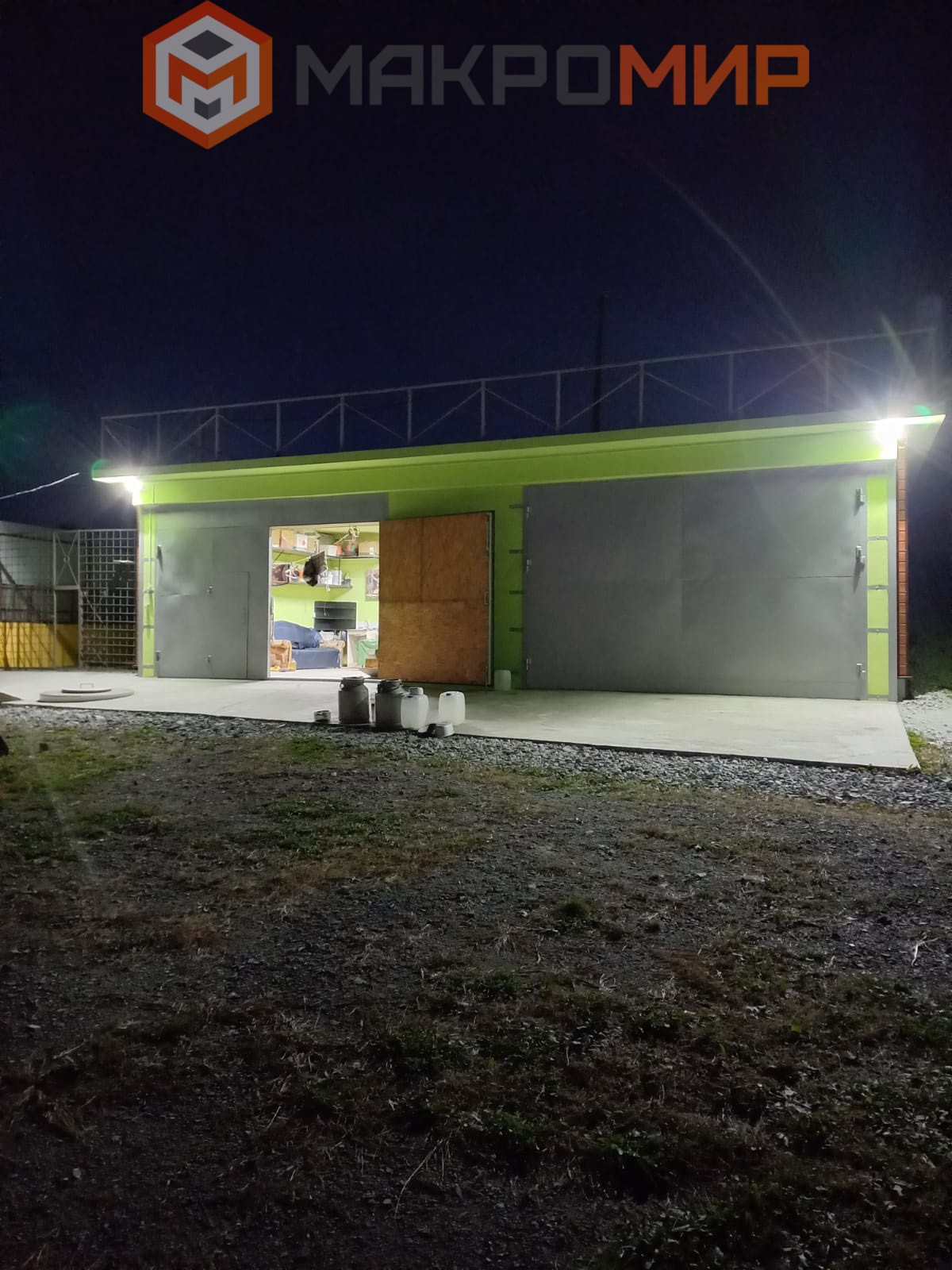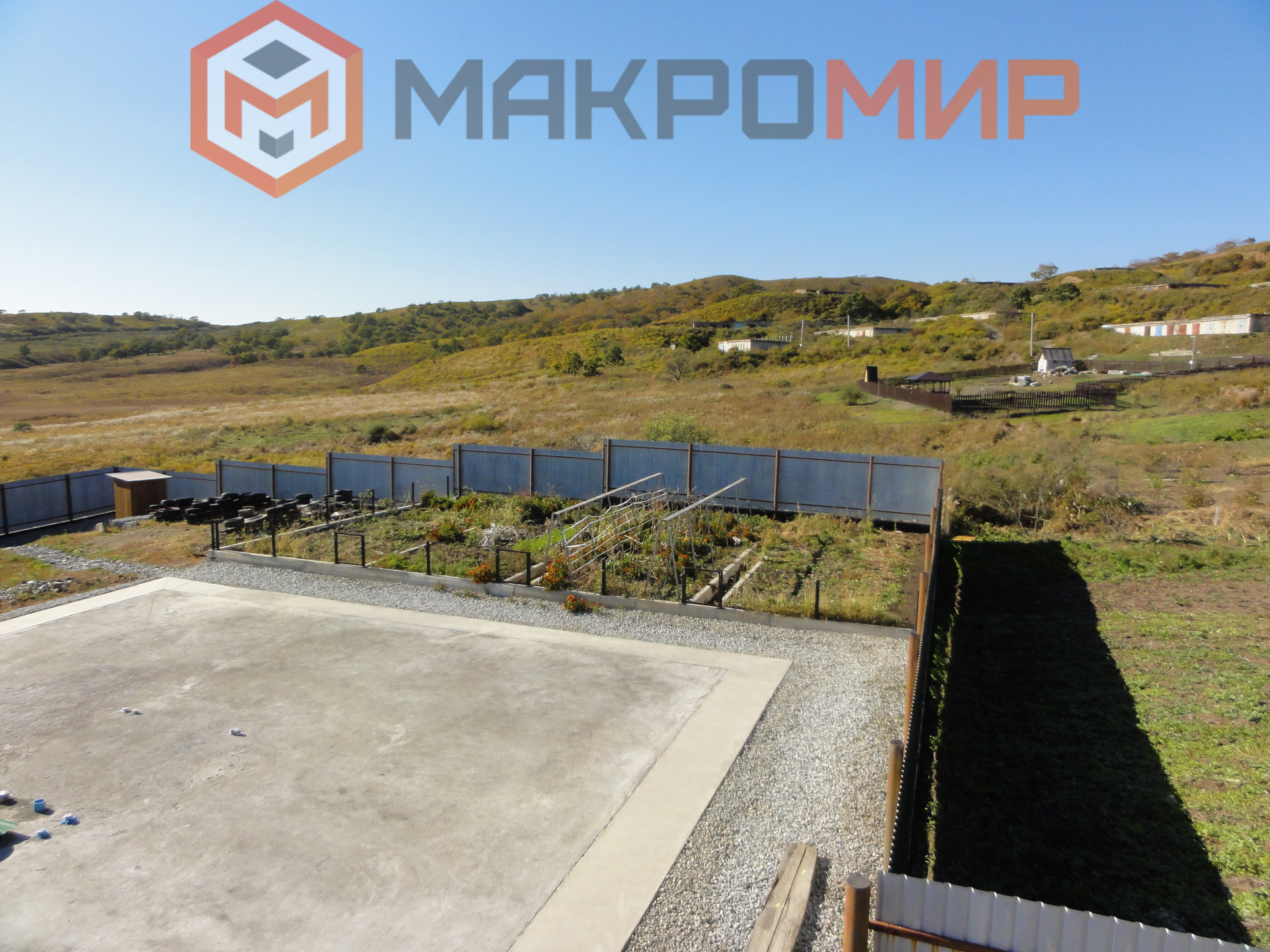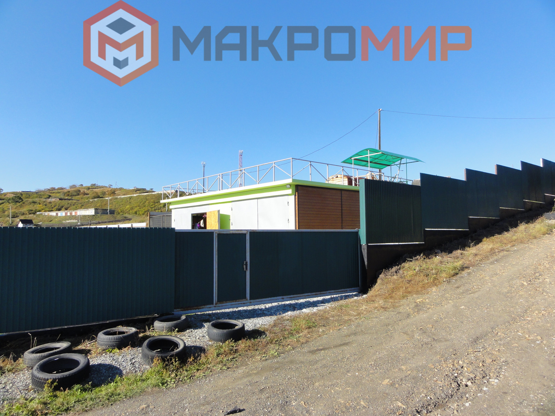 Гараж. Стены гаража с армированных блоков, длиной 4,2м. На стенах гаража перекрытие из плиты «пустотки», стяжка, утепление изопинком и заливка плиты. Плита на гараже размером 13×7. Толщина плиты 15см. Арматура 1,2; двойное армирование. На самом гараже (верхний уровень участка) можно строить второй жилой дом, либо иное строение. Все бетонные работы проведены бетоном марки М350, Б25, приобретался в «Славянское РБУ». Так же на этом уровне участка находится большой, жилой, тёплый вагон поезда для круглогодичного проживания. На верхней площадке имеются насаждения, которые дают плоды.