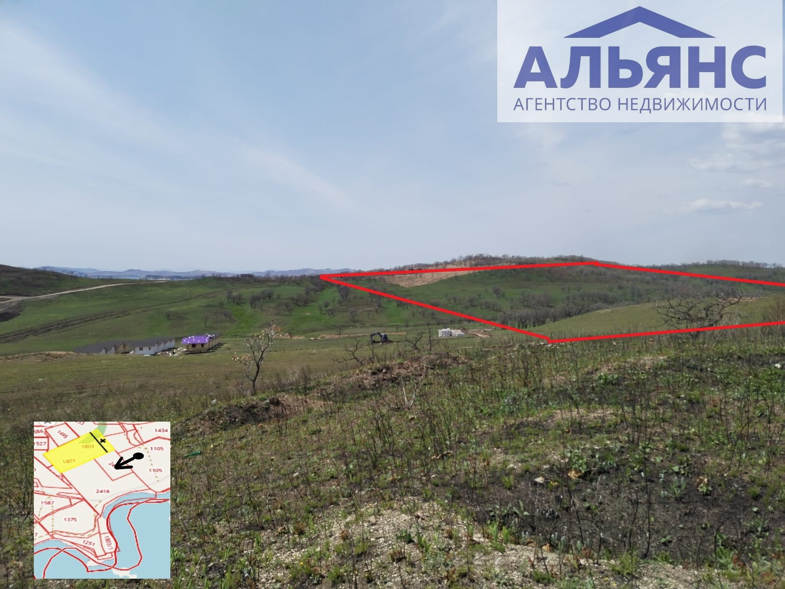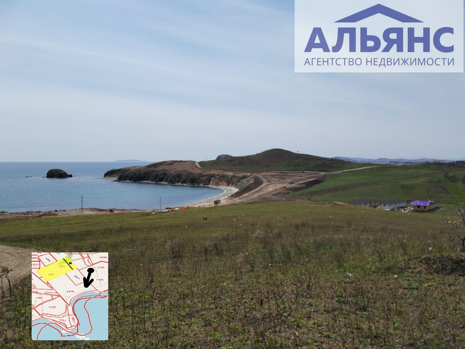 - Участок находится рядом с морем, напротив бух. Алеут