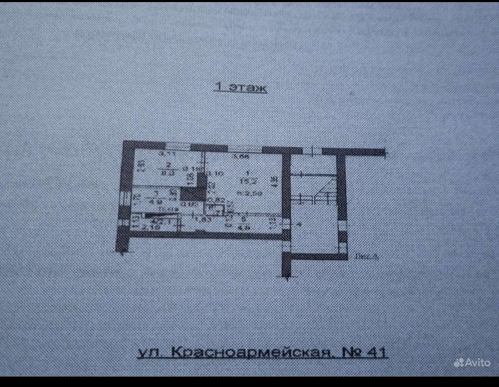 2-комнатная квартира, 35.7 м2, этаж 1 / 2, на продажу в посёлке городского типа Зауральский, Красноармейская улица, 41