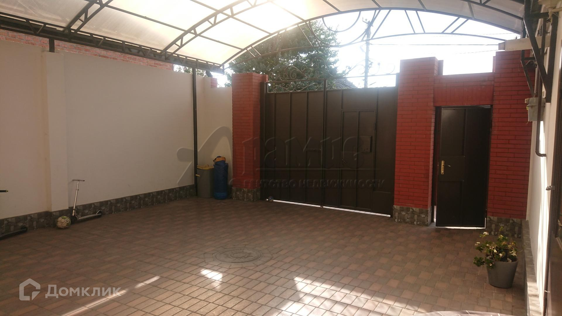 Большой двор с навесом из лексана. Хороший ремонт. Состояние - зайти и жить. большой земельный участок.