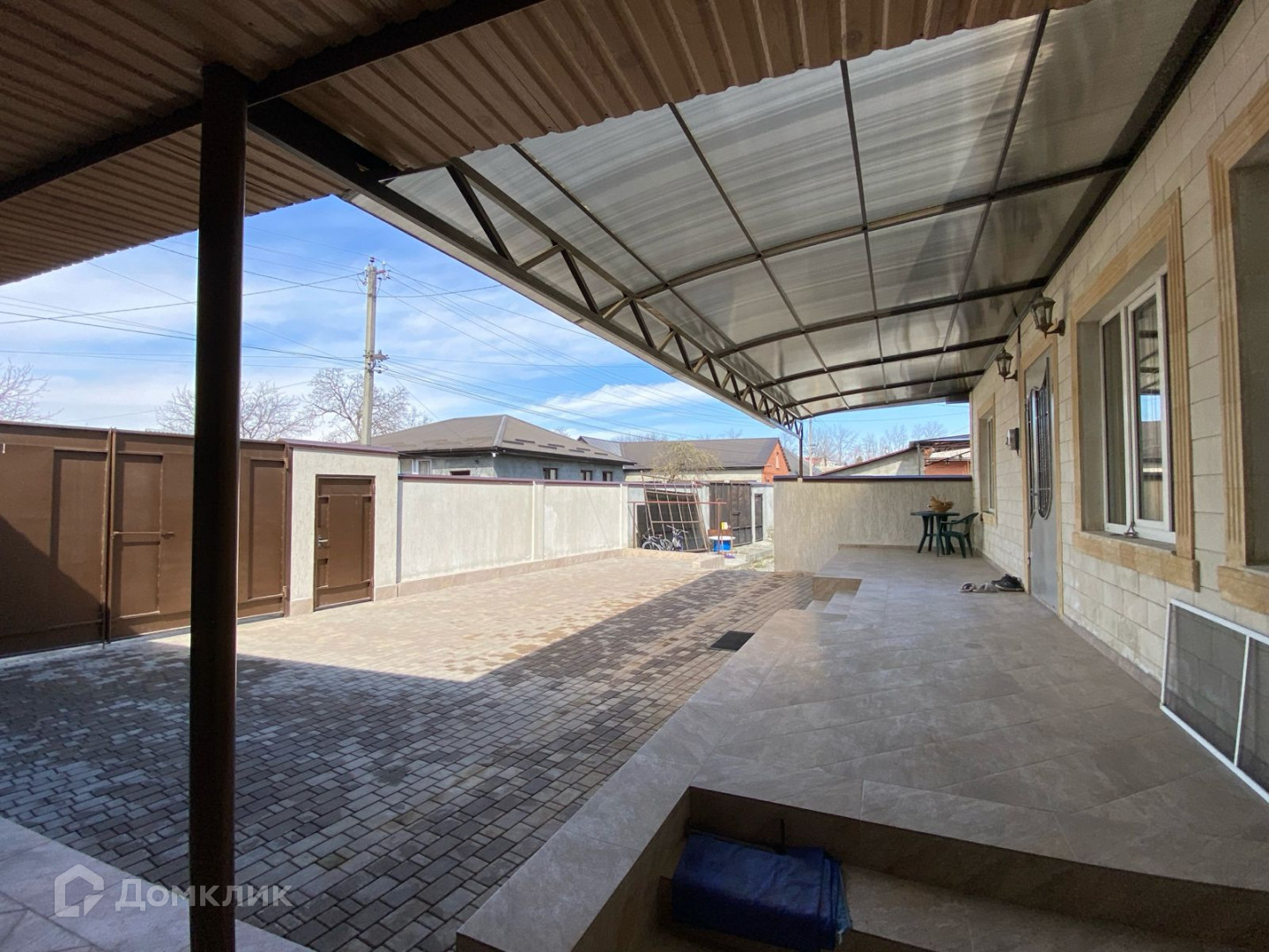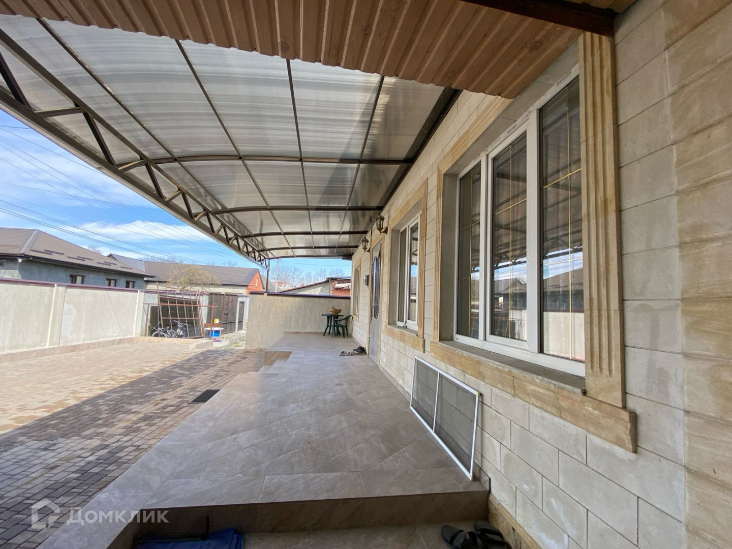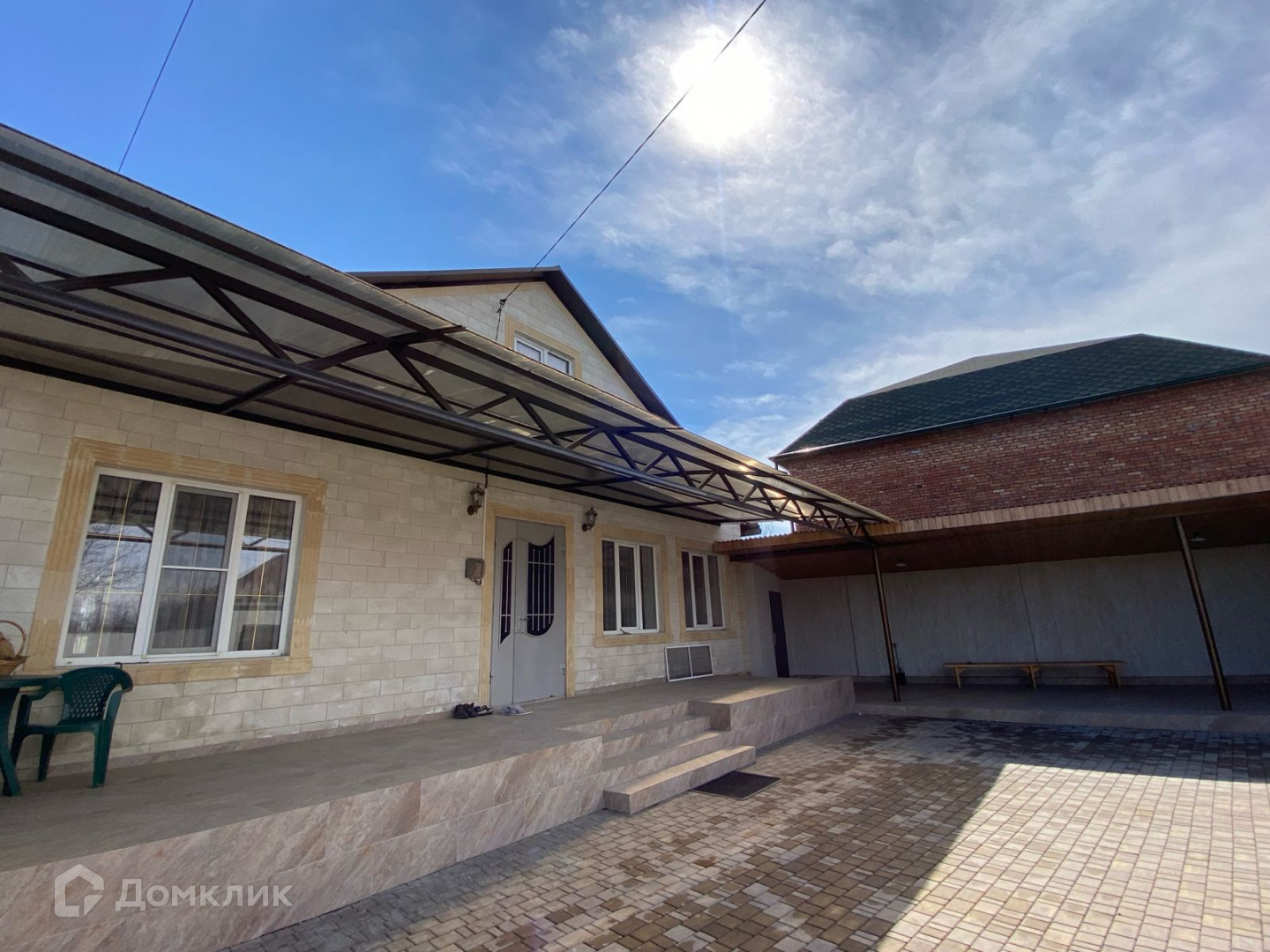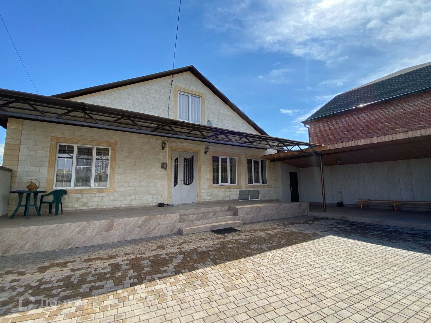 1 этажный  кирпичный дом, фасад сделан из дагестанского камня.