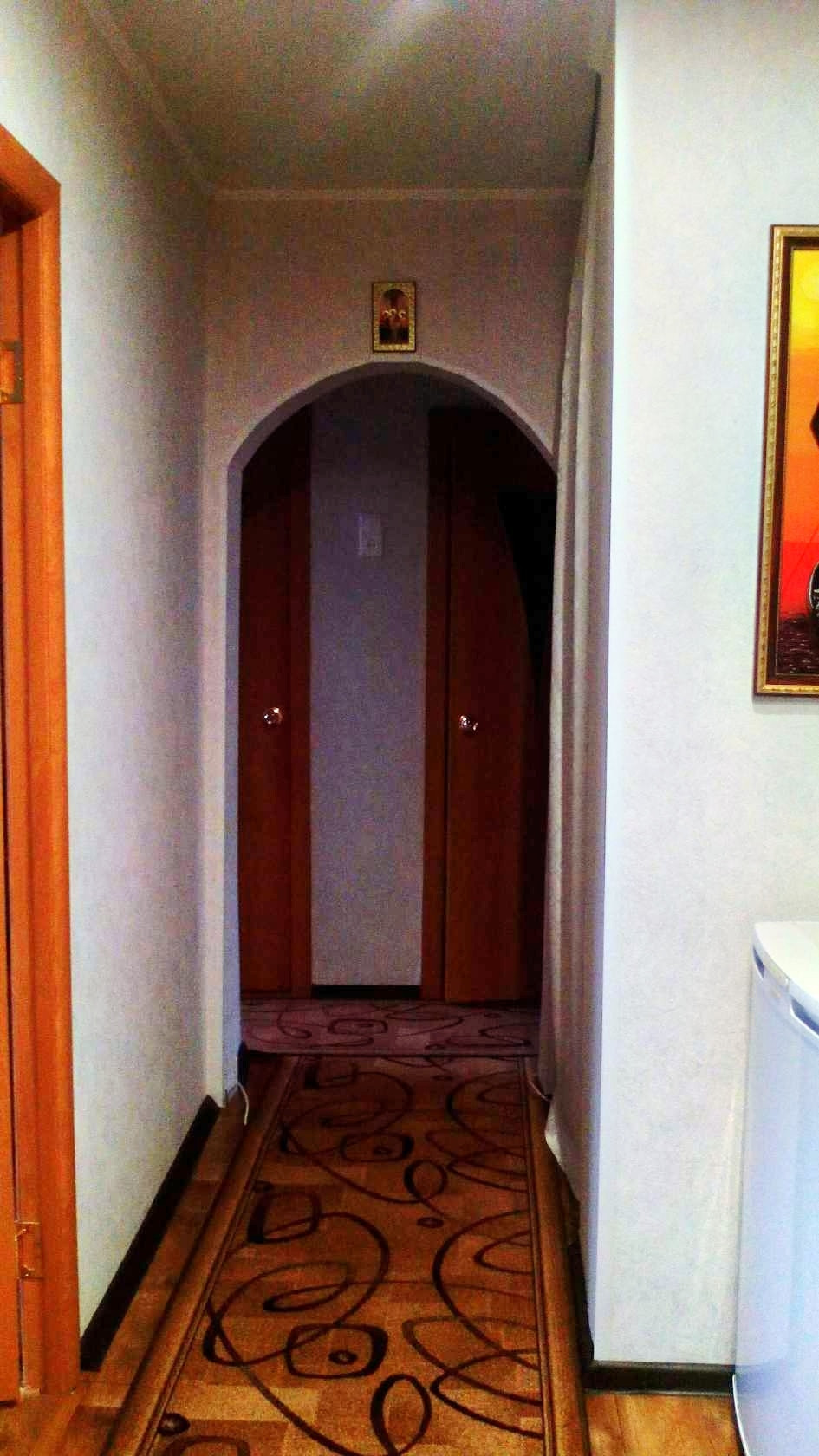 Окна пластиковые. На полу линолеум.  Потолки натяжные.