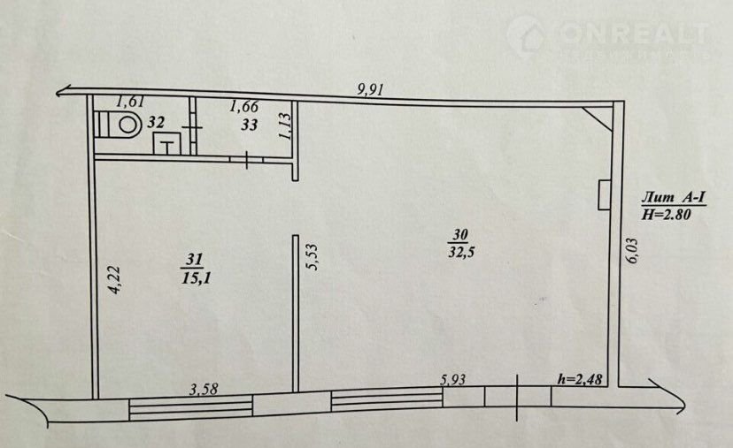 Высота потолков 2.8 м