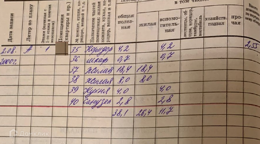 Общая площадь 38.1 м2