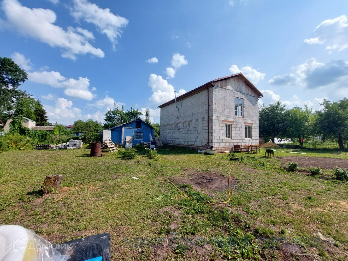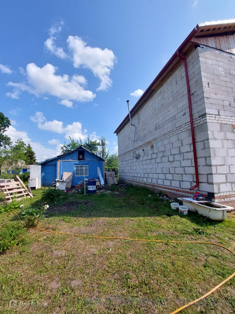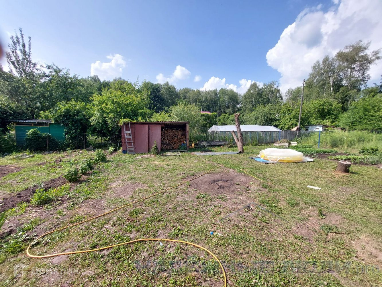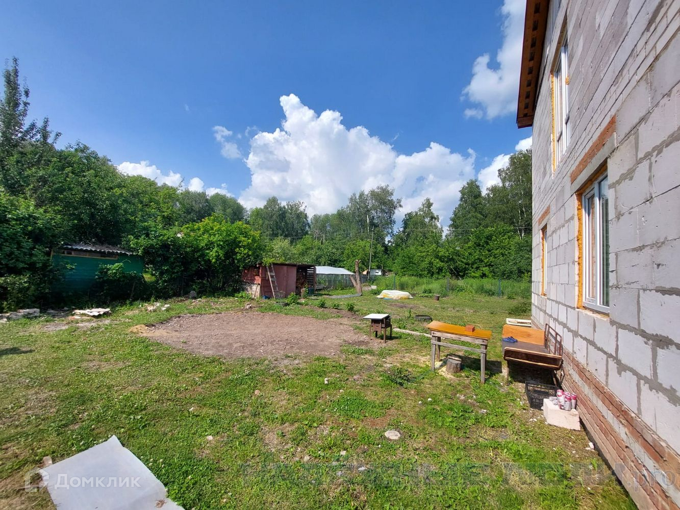 Участок большой, прямоугольной формы. Рядом с домом на участке расположен еще один небольшой дом.