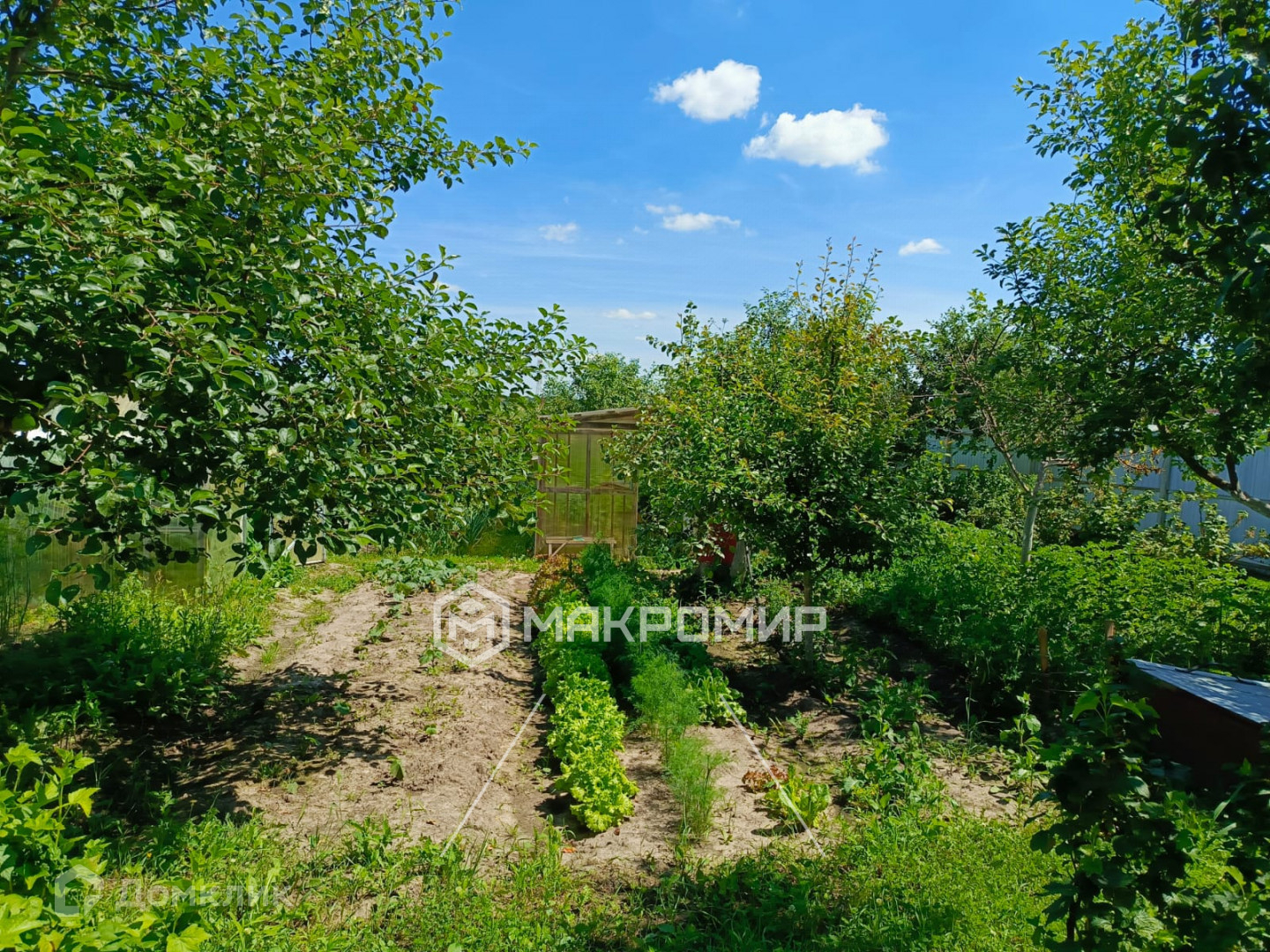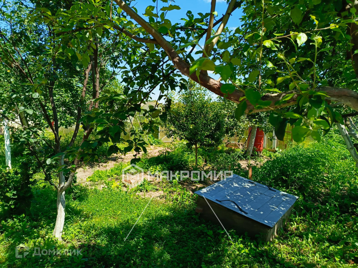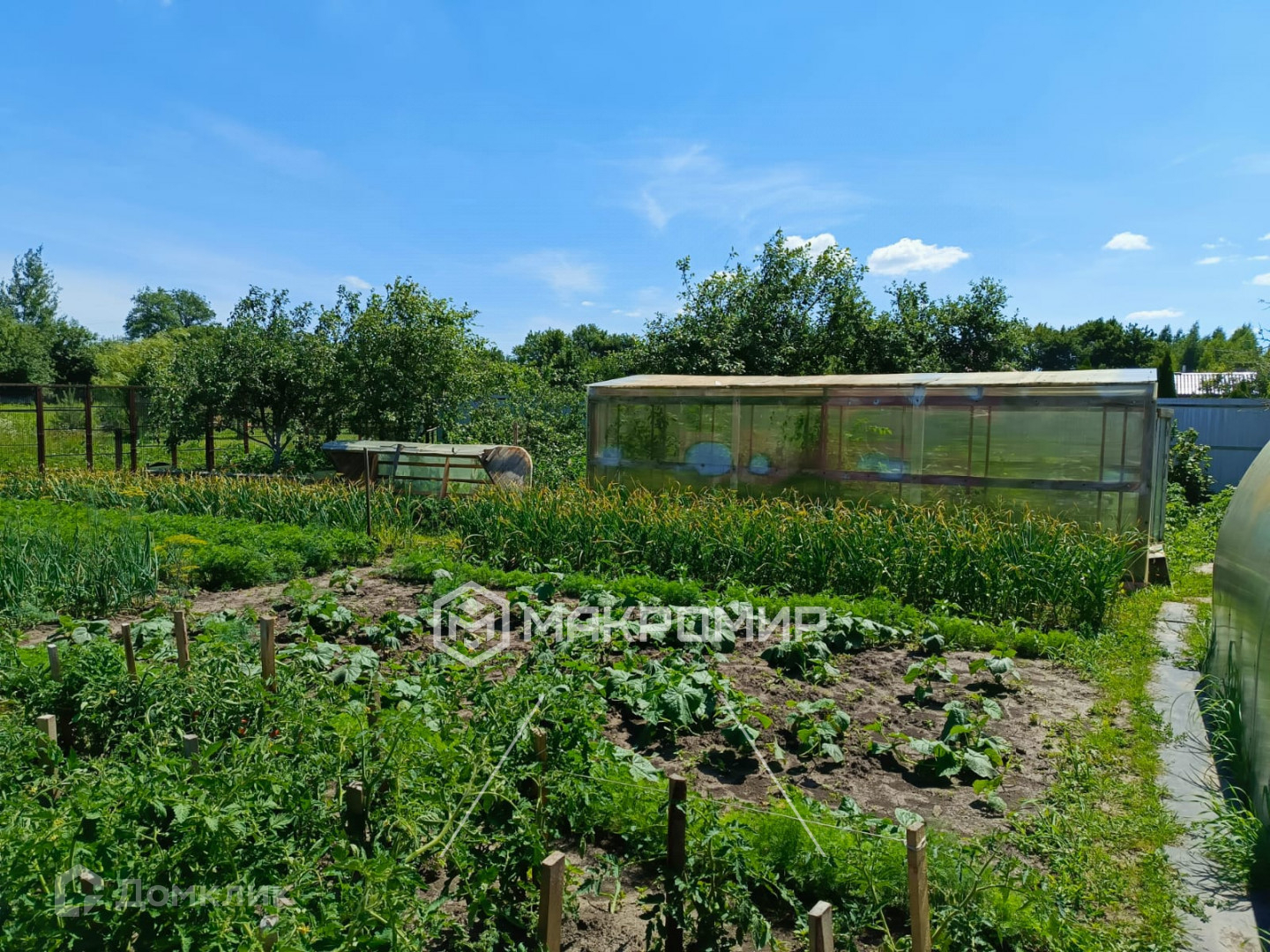 Скважина в 10 м и септик. Две теплицы. Земля обрабатывается, также много садовых насаждений.
