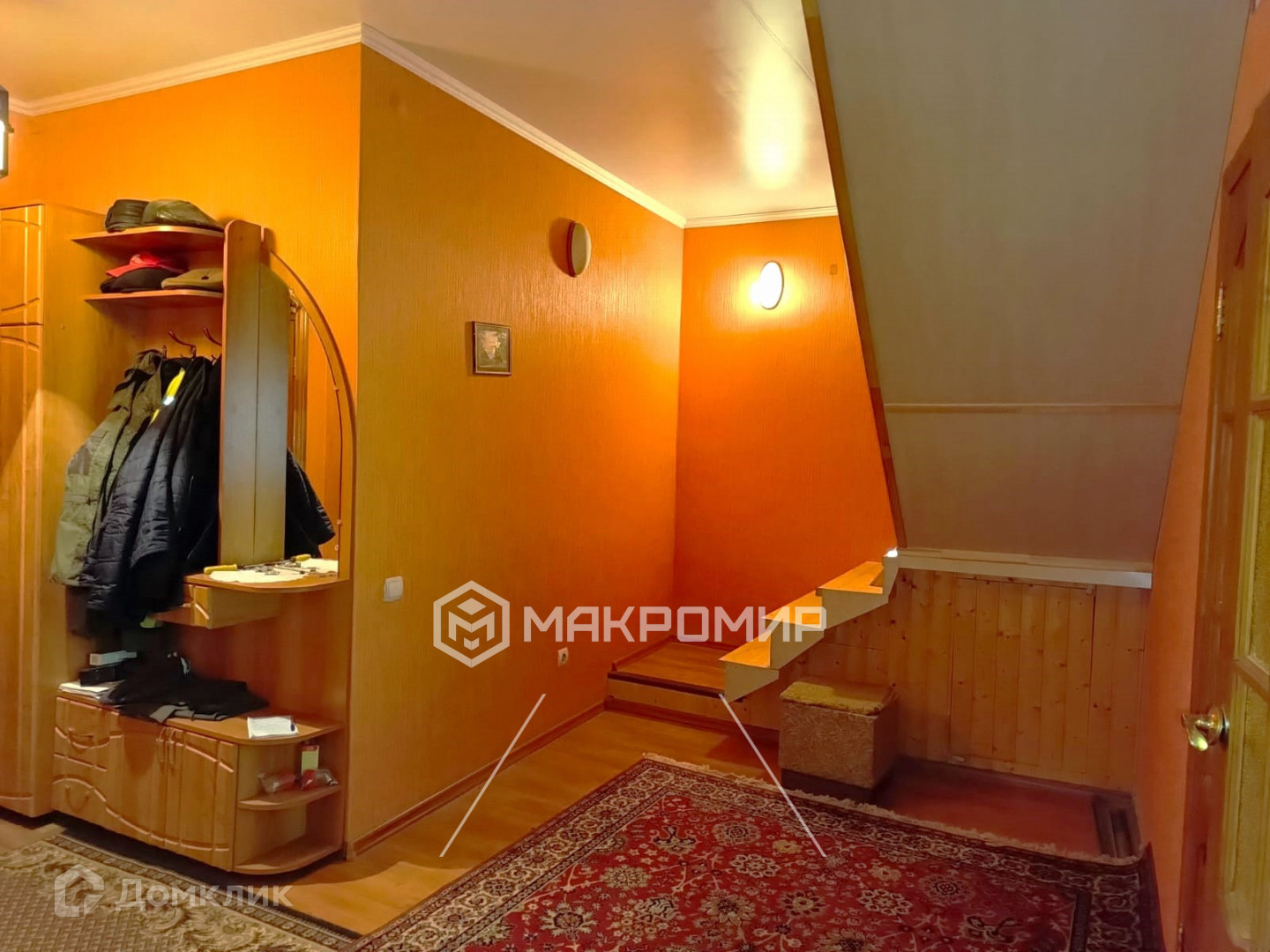 Широкий коридор с выходом на мансарду. На втором этаже 2 комнаты и вместительная гардеробная.