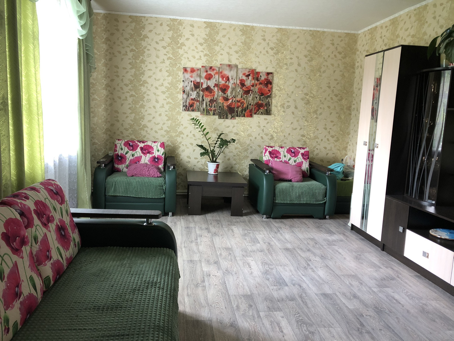 В доме 2 спальных комнаты ,большой  зал, раздельный санузел ,просторная  кухня.