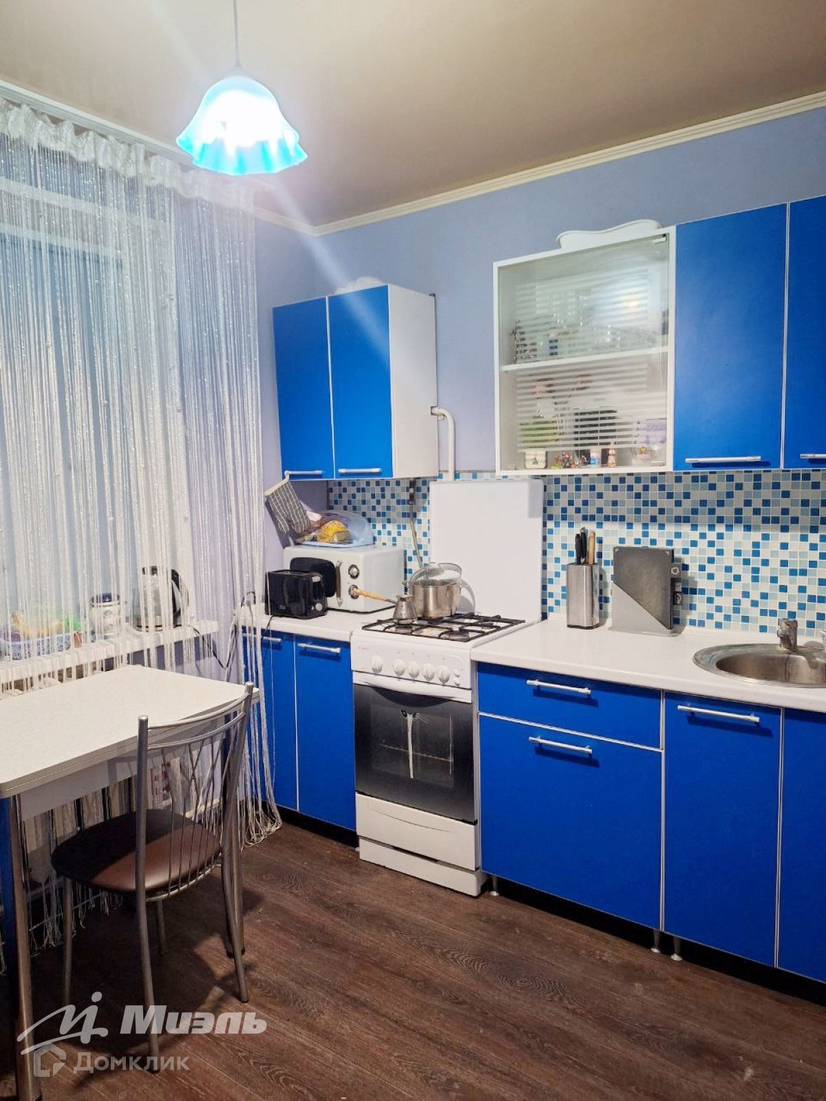 Есть просторная гардеробная при входе в квартиру. Планировка очень удобная: большая кухня, просторная комната.