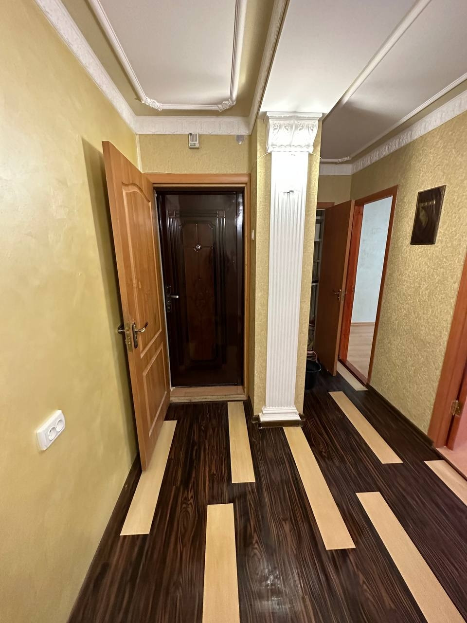 Планировка: коридор, совмещенный сан узел, кухня, три комнаты, кладовая. Коммуникации: электричество, централизованное водоснабжение, автономное отопление - элекрический котел. Также установлен бойлер. Окна квартиры выходят во двор и на улицу. Во дворе детская площадка.