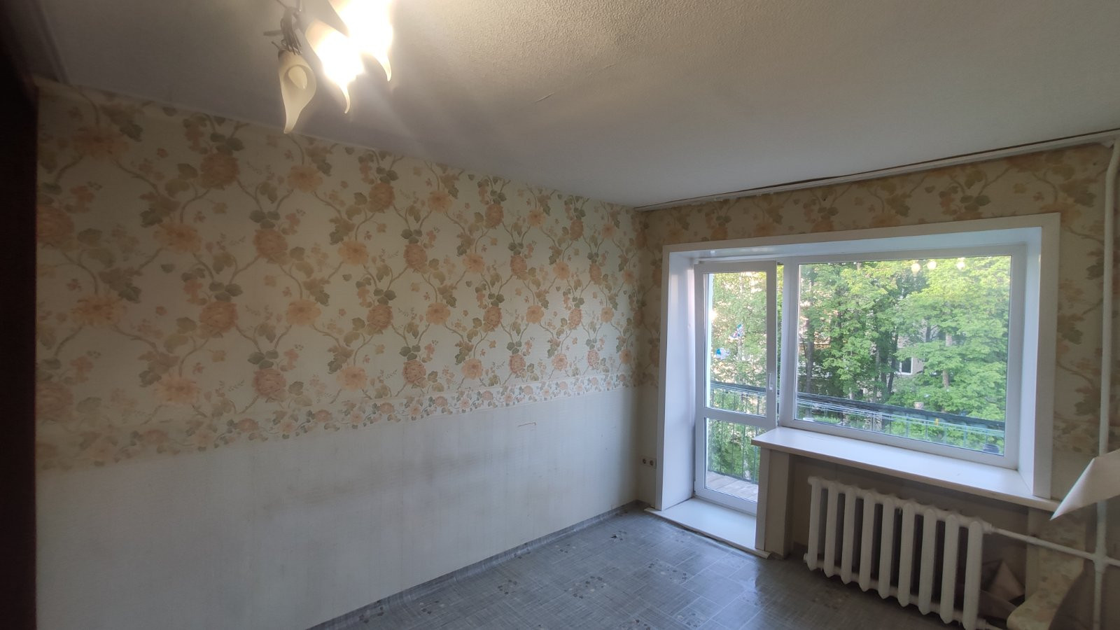 Требует косметического ремонта (замена обоев). Фактически сделаны 2 изолированные комнаты. Зимой очень тепло, перекрываем все батареи.