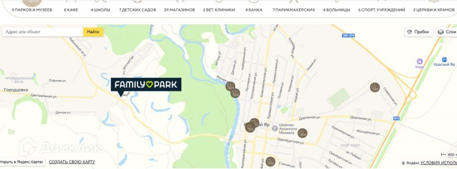 Рядом с поселком, в с. Красный Яр, вся необходимая инфраструктура, магазины, школы, детские сады, поликлиники, банки и т.д.