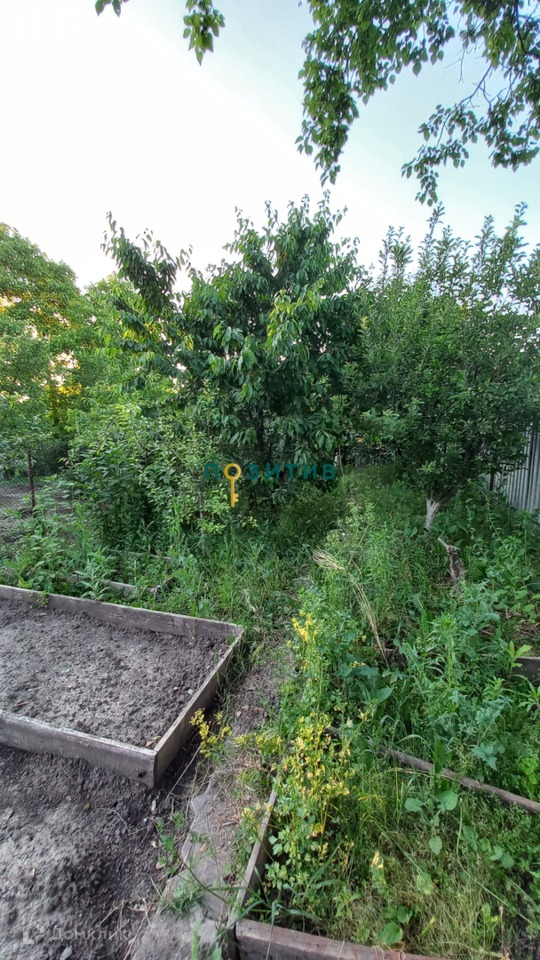 Есть въезд. Сзади дома хозпостройка и участок с плодовыми деревьями.