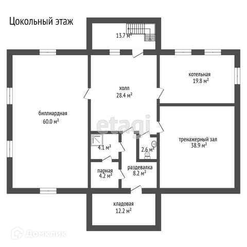 2. Цокольный этаж: котельная с современным оборудованием, банный комплекс, домашний кинозал, тренажерный зал, гардеробная, винный погреб, сан узел, лестничная клетка.