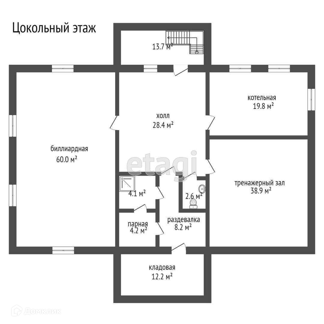 2. Цокольный этаж: котельная с современным оборудованием, банный комплекс, домашний кинозал, тренажерный зал, гардеробная, винный погреб, сан узел, лестничная клетка.