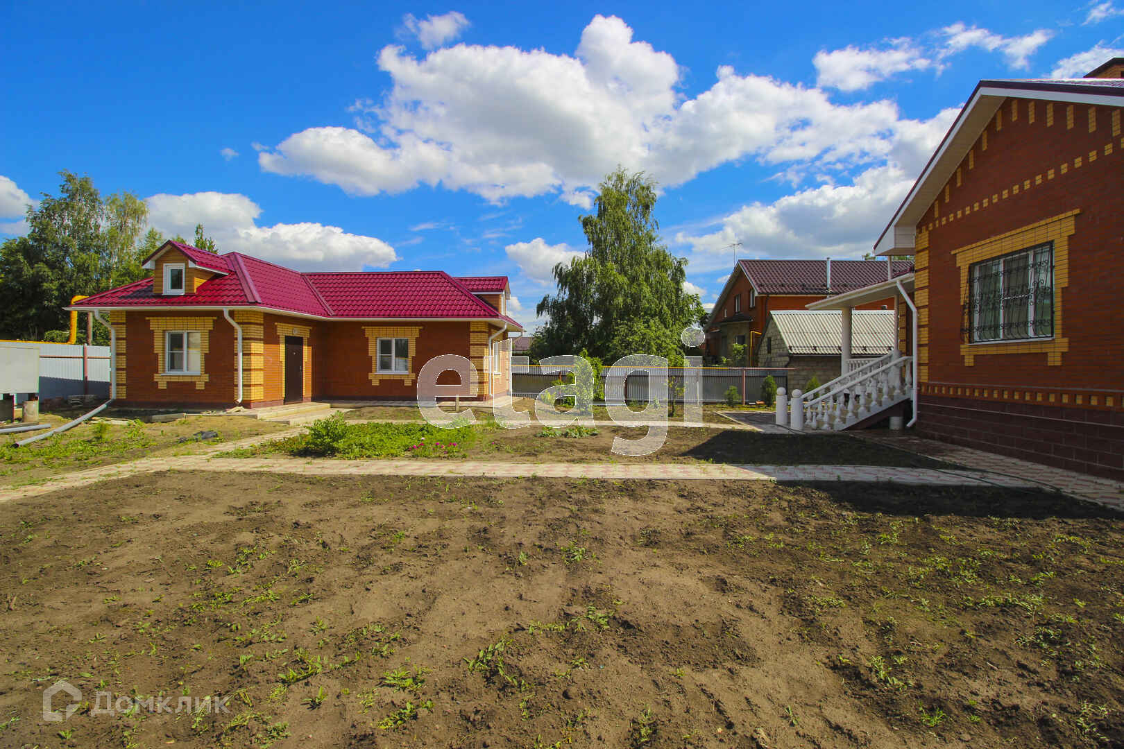 На территории построен еще один дом из кирпича 60 м2 с подвальным помещением и гаражом, подведены инженерные сети.