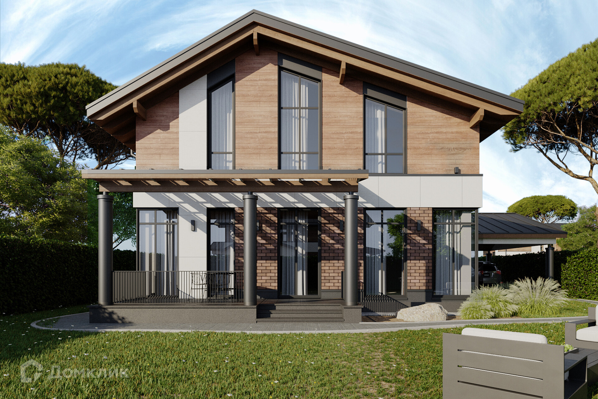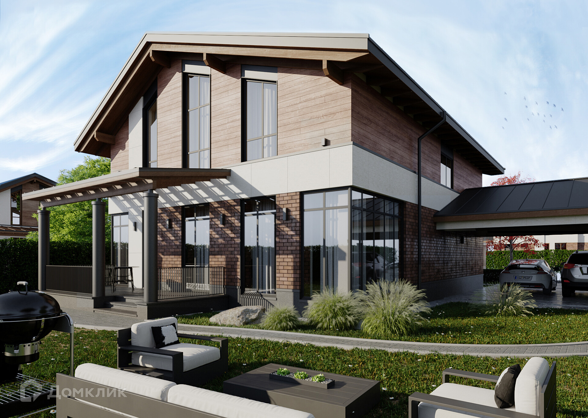 В продаже современный дом по проекту ШАЛЕ220 235.4 м2 на участке 6.96 соток расположен в коттеджном поселке бизнес- класса "Юсупово Village" на юге Московской области. Поселок находится в 24 км от МКАД по Симферопольскому или Каширскому шоссе в окружении леса. Рядом большой пруд и река. На территории КП "Юсупово Village" будет создана вся необходимая инфраструктура для постоянного проживания - торговый центр с магазинами и рестораном на пруду, школа и детский сад, теннисная академия, парки, спортивные и детские площадки, так же можно пользоваться инфраструктурой нашего построенного ЖК "Юсупово Лайф парк" - фитнес-центр с бассейном, салон красоты, автомойка, магазины. Рядом расположен город Домодедово (5 км). К поселку ходит общественный транспорт. Коттедж продается без ремонта в свободной планировке, с навесом на 2 автомобиля.