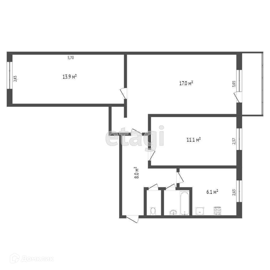 Общая площадь 62.1 м2