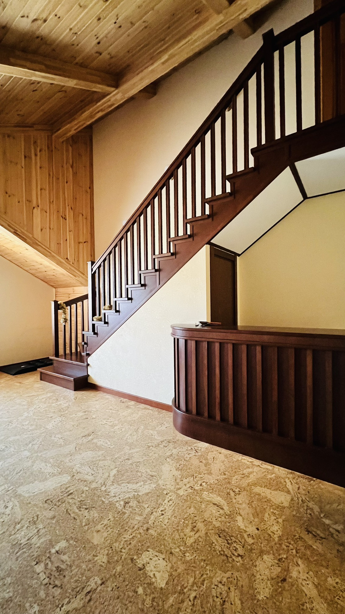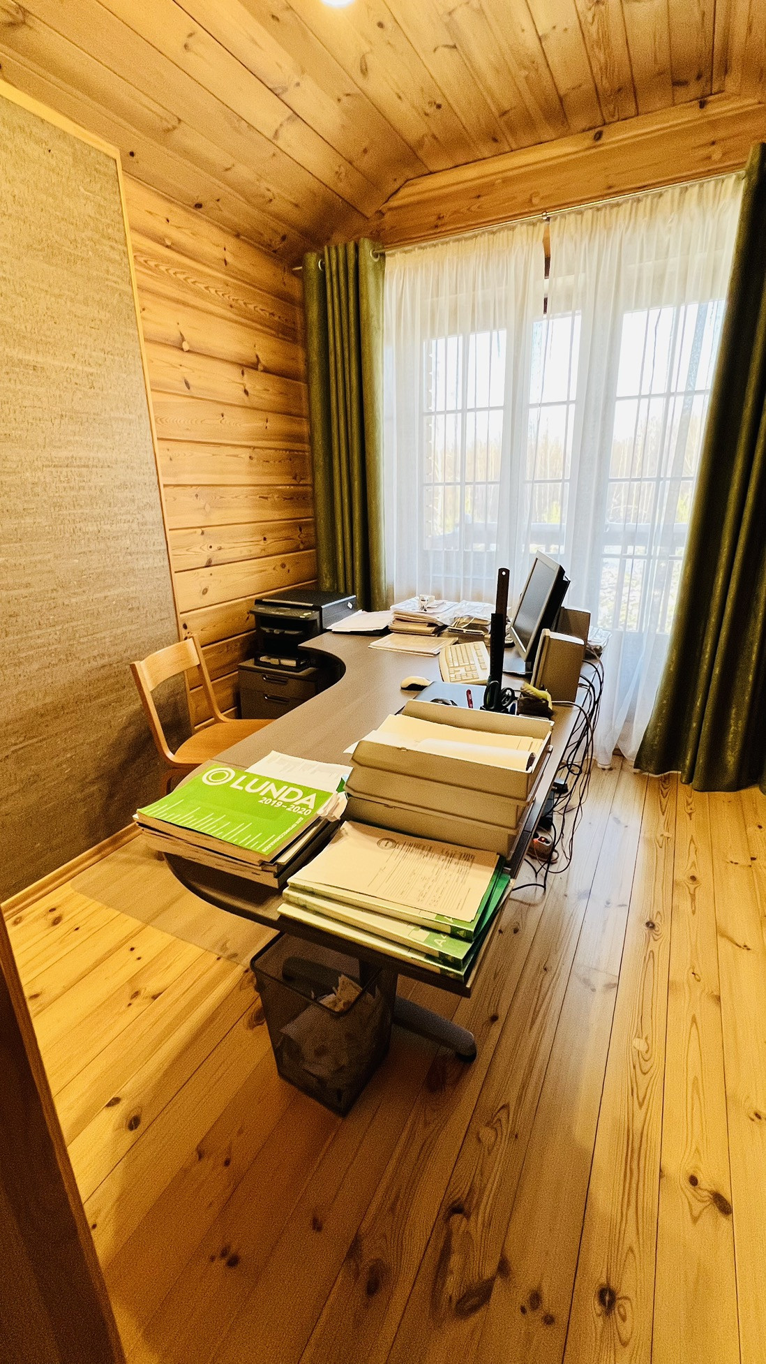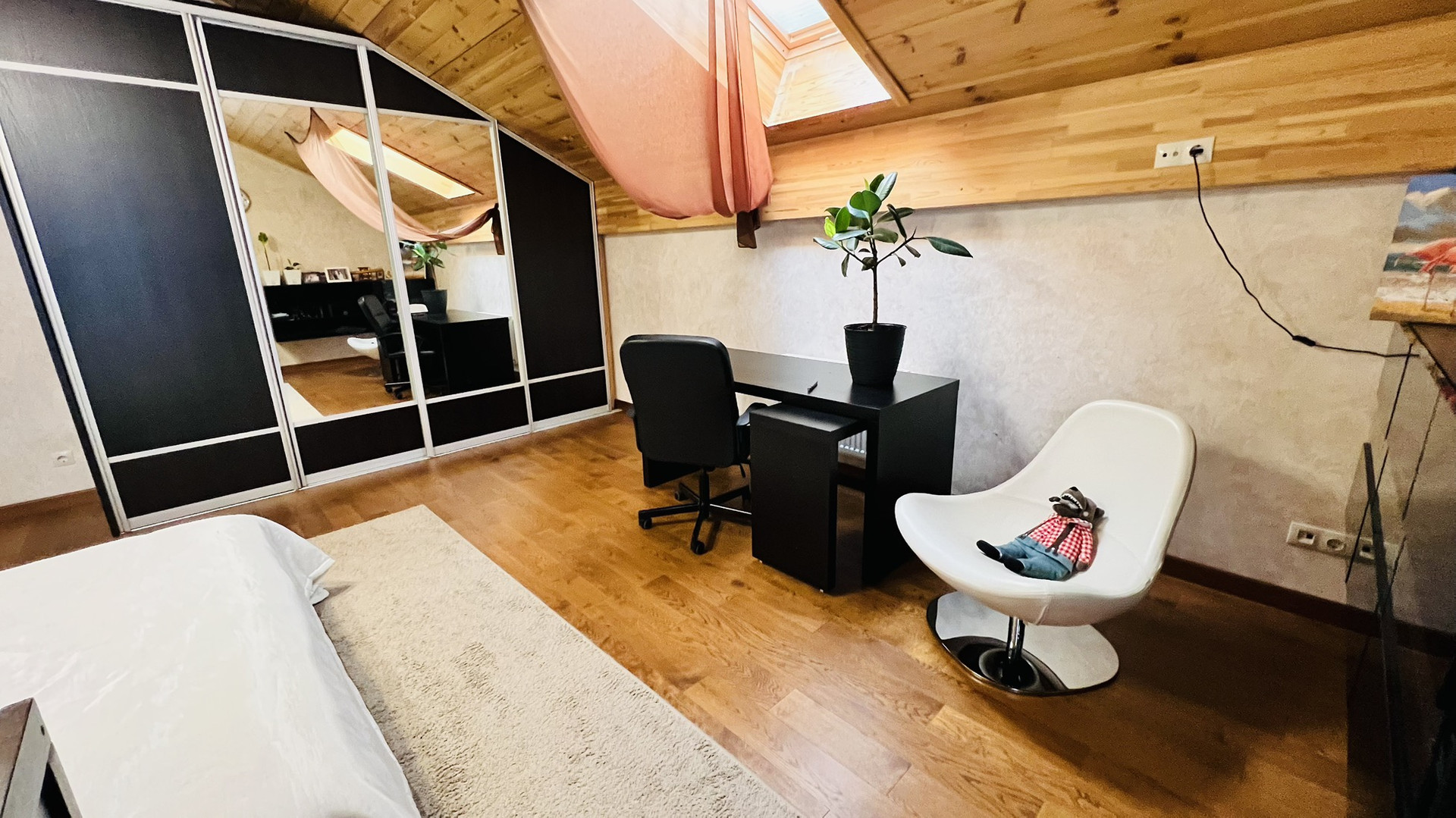 Третий этаж мансардный , оборудован под рабочий кабинет и зону отдыха. Отделка полов и стен - дерево.