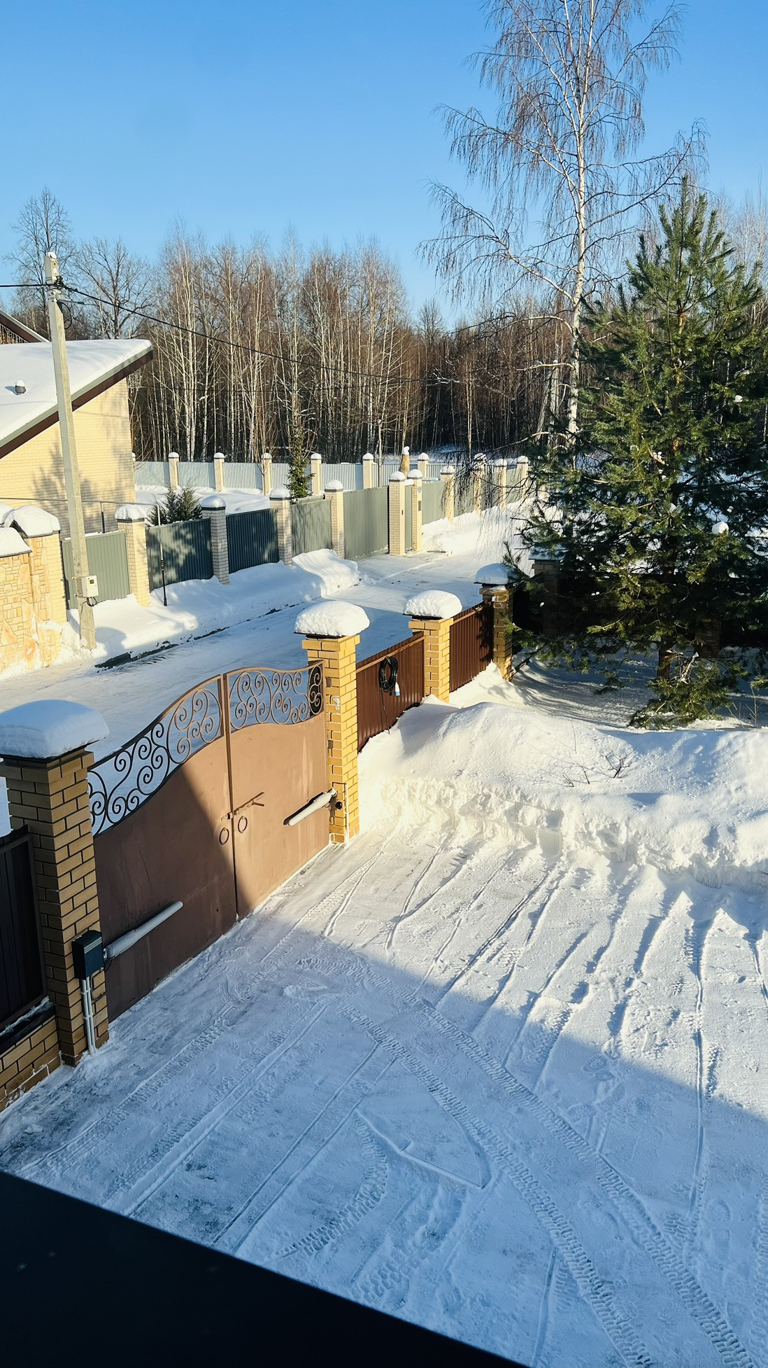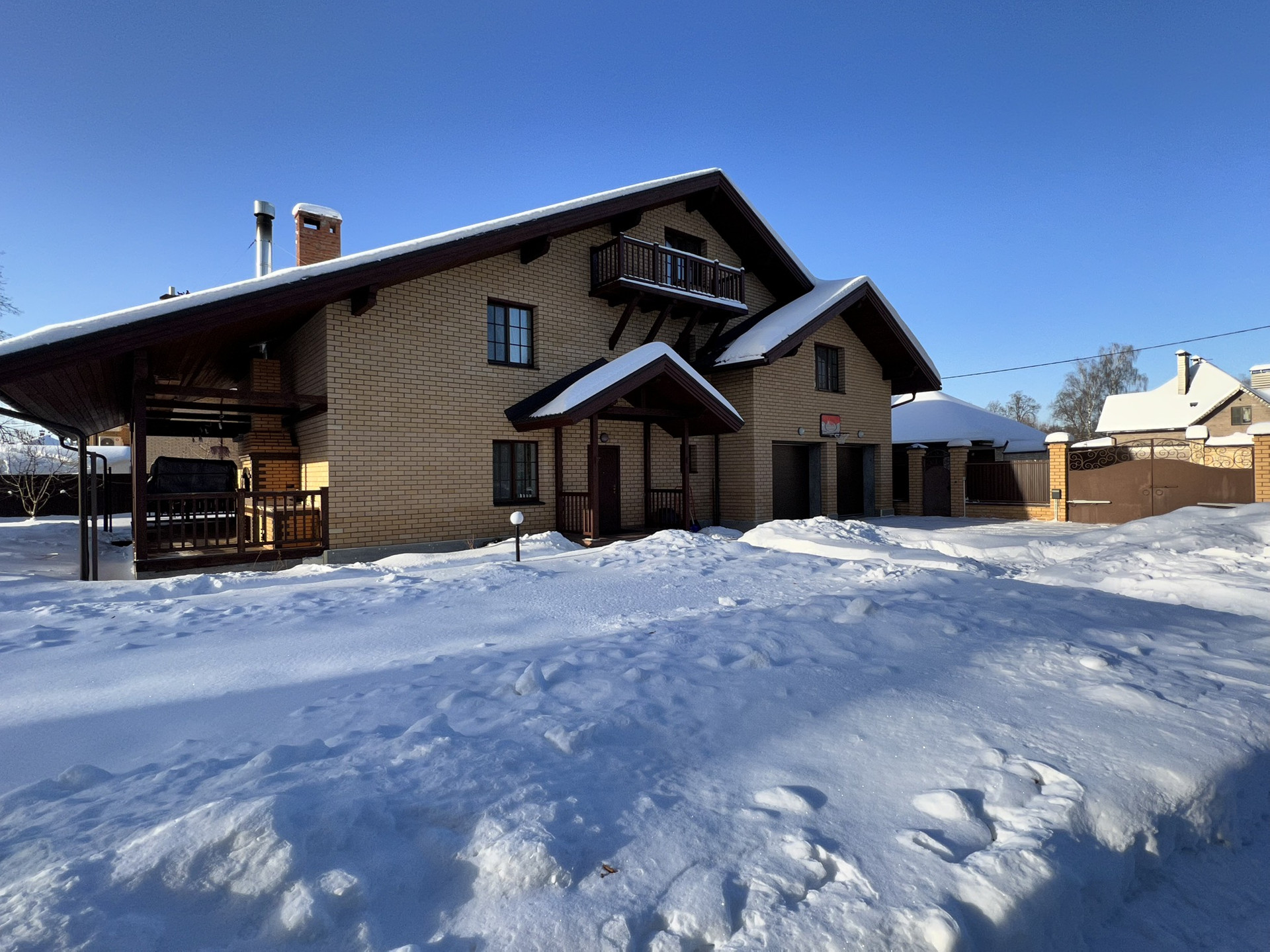 Дом 350 кв.м на участке 16 сот. Асфальтированная освещенная дорога, зимой регулярно чистят. Рядом лес, природа, много зелени. Хорошие соседи.