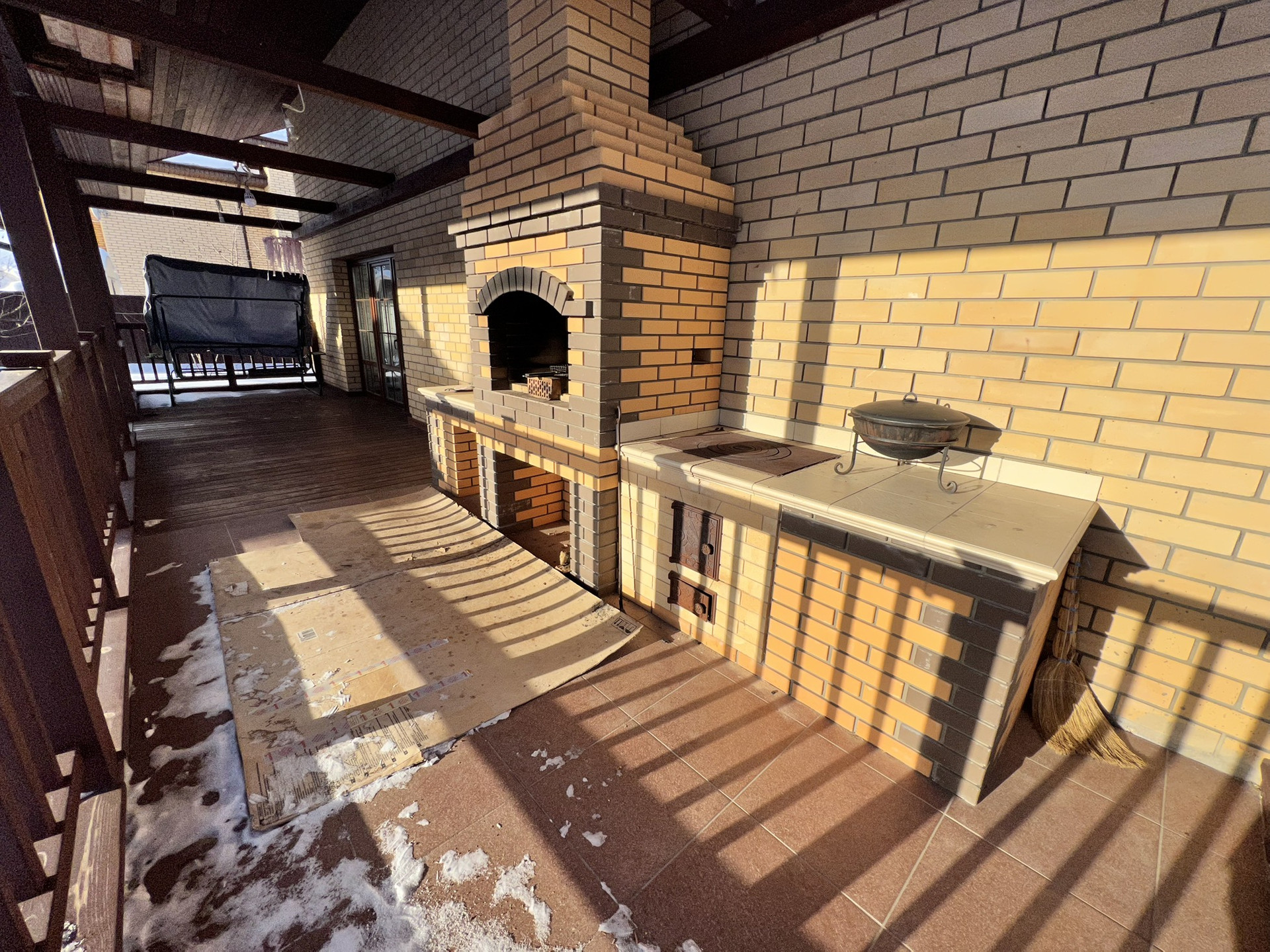 Это окно выходит на большую террасу с барбекю.