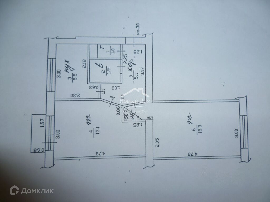 Жилая площадь 28.6 м2