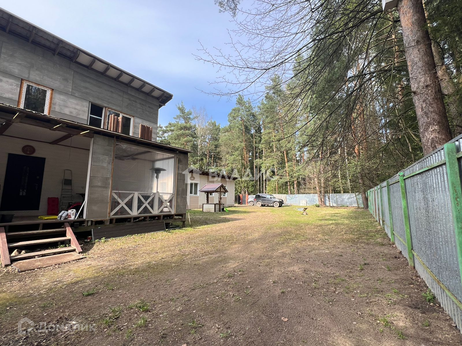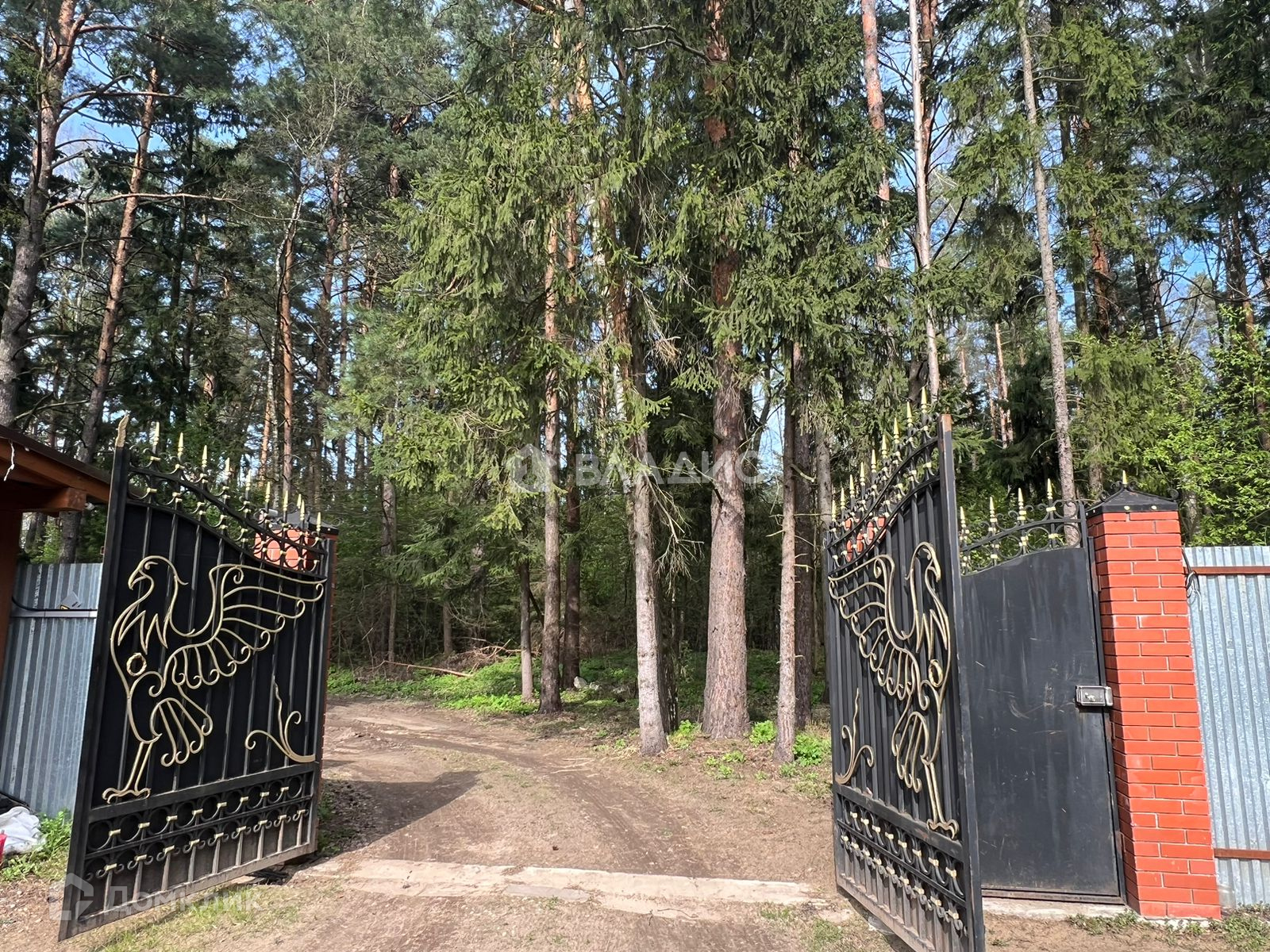 Участок находится на охраняемой территории, которая отделен забором с откатными воротами на пульте.