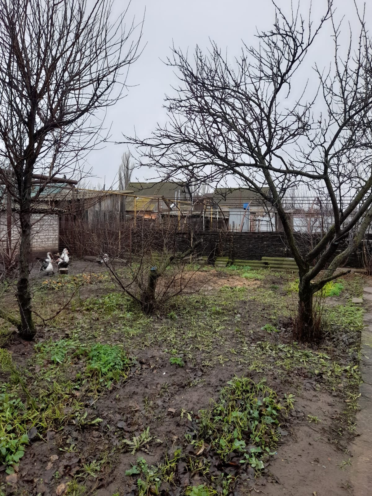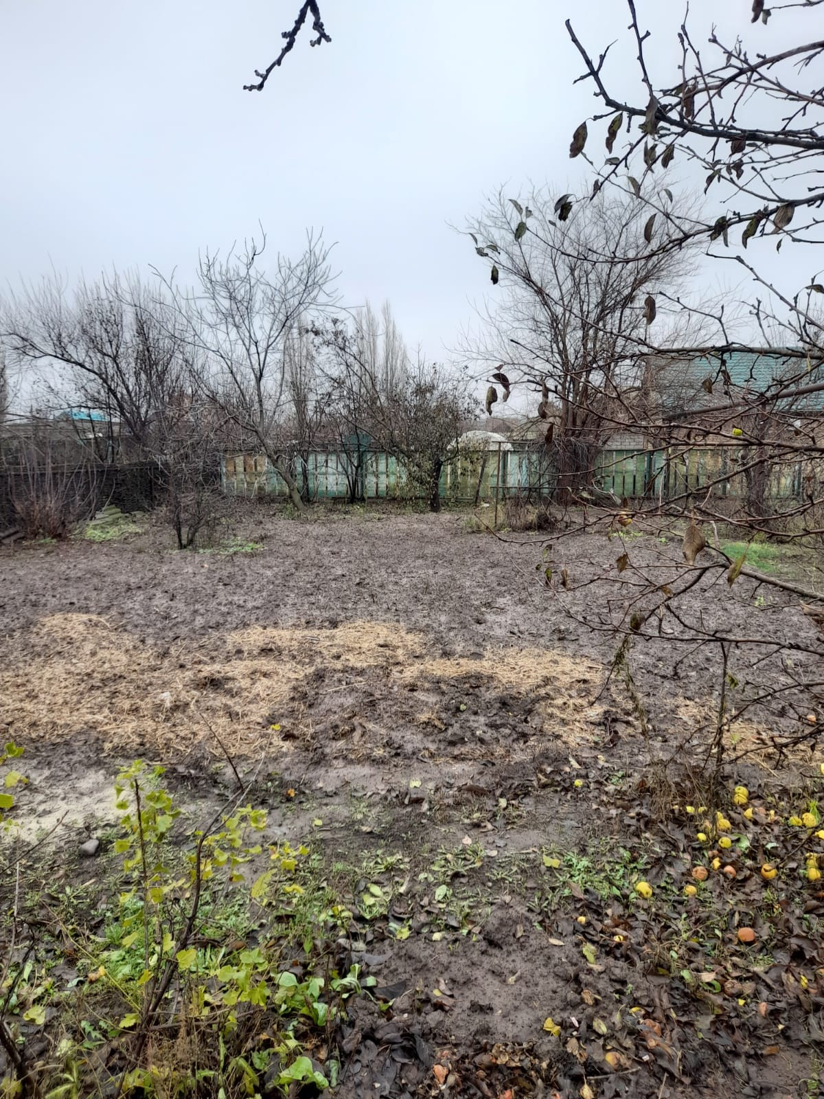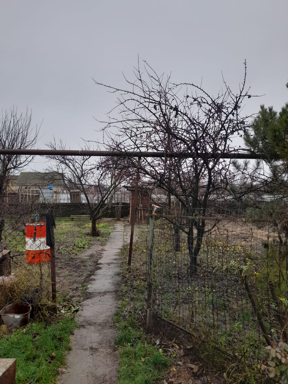 Есть фруктовые деревья, огород.