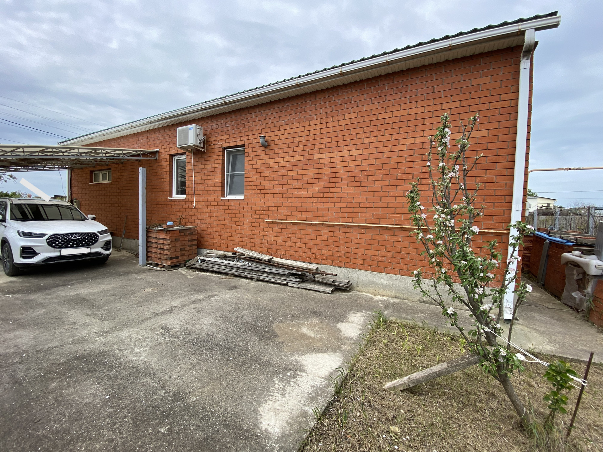 Во дворе забетонирована площадка, имеется навес.