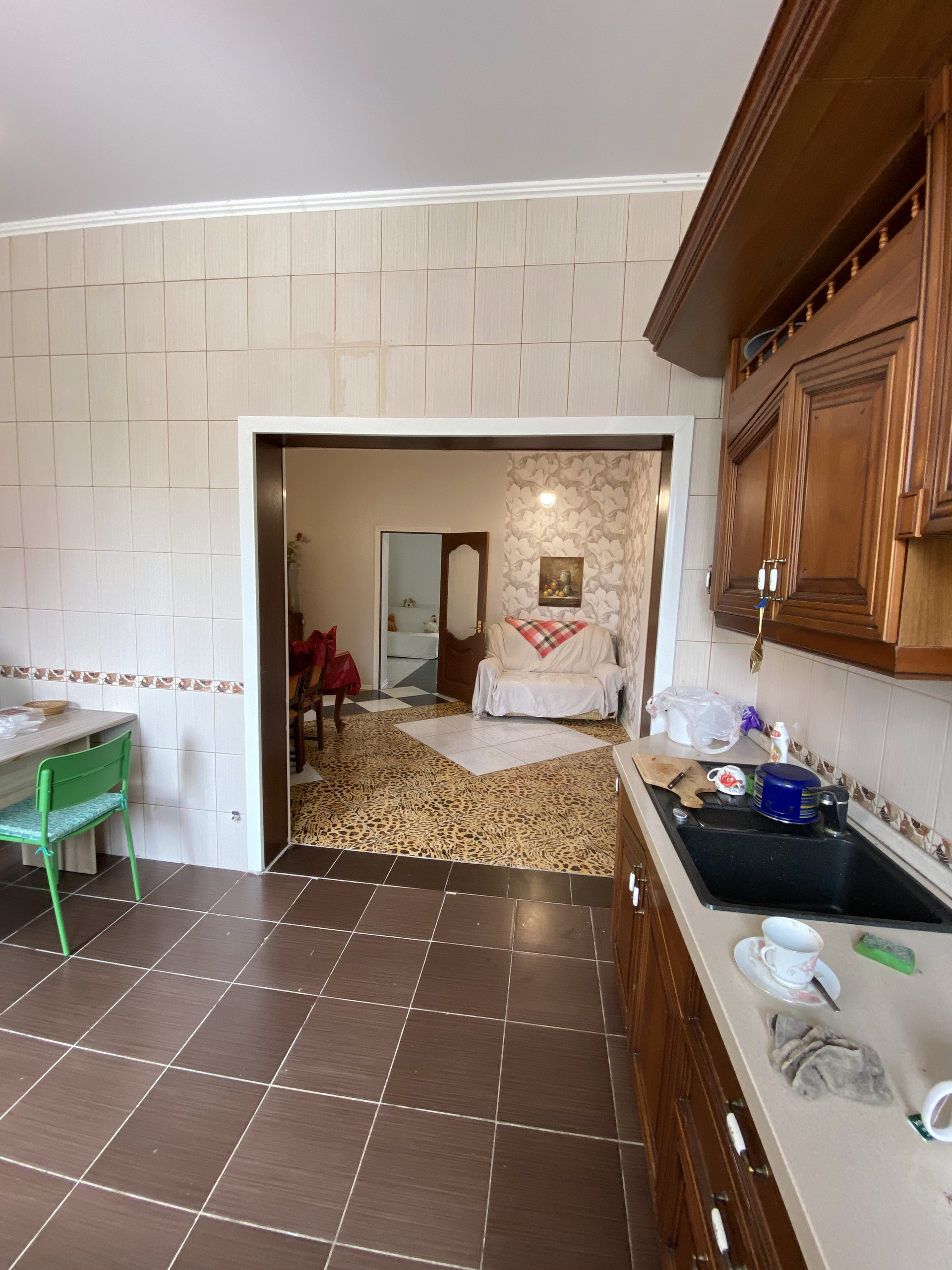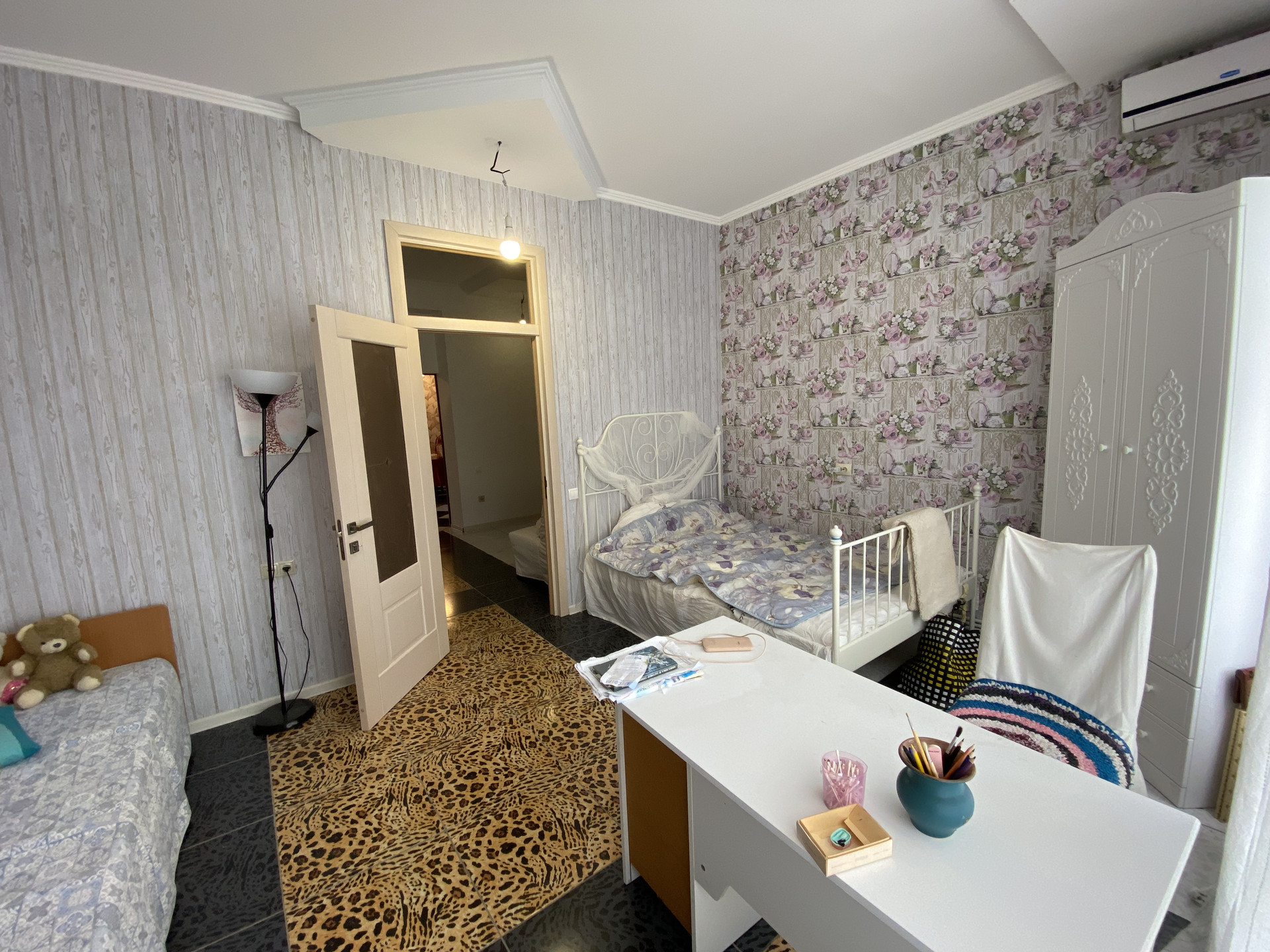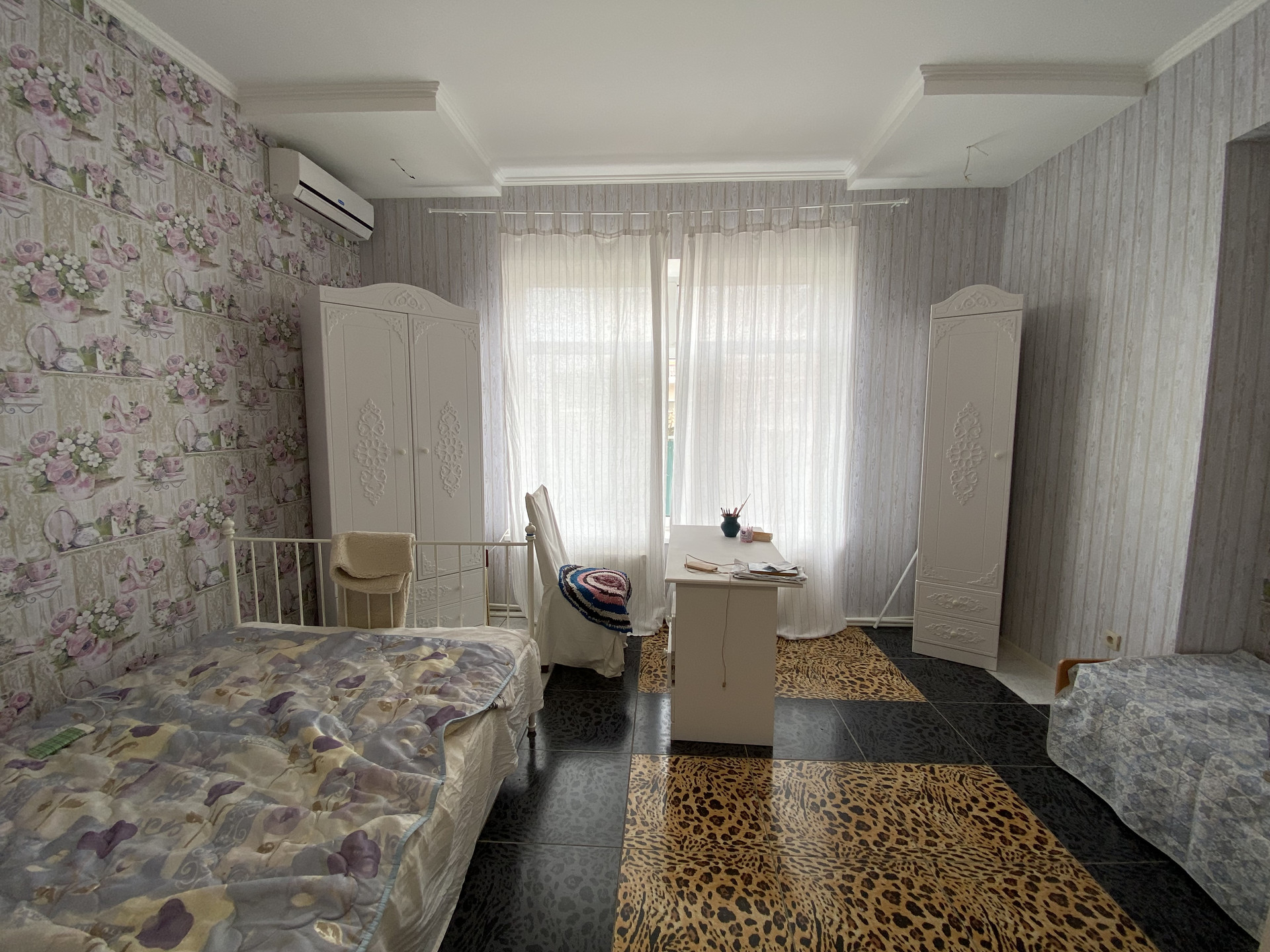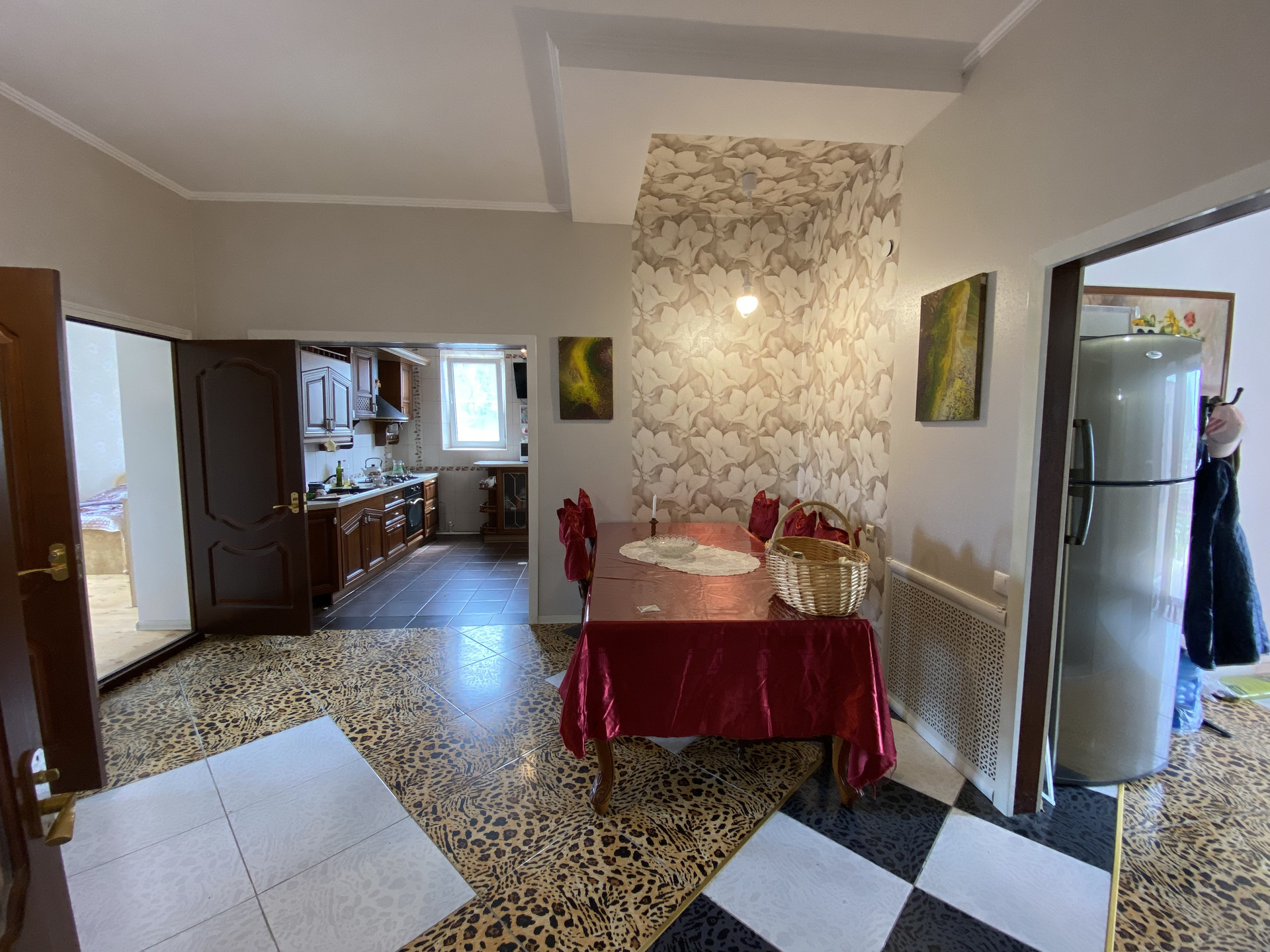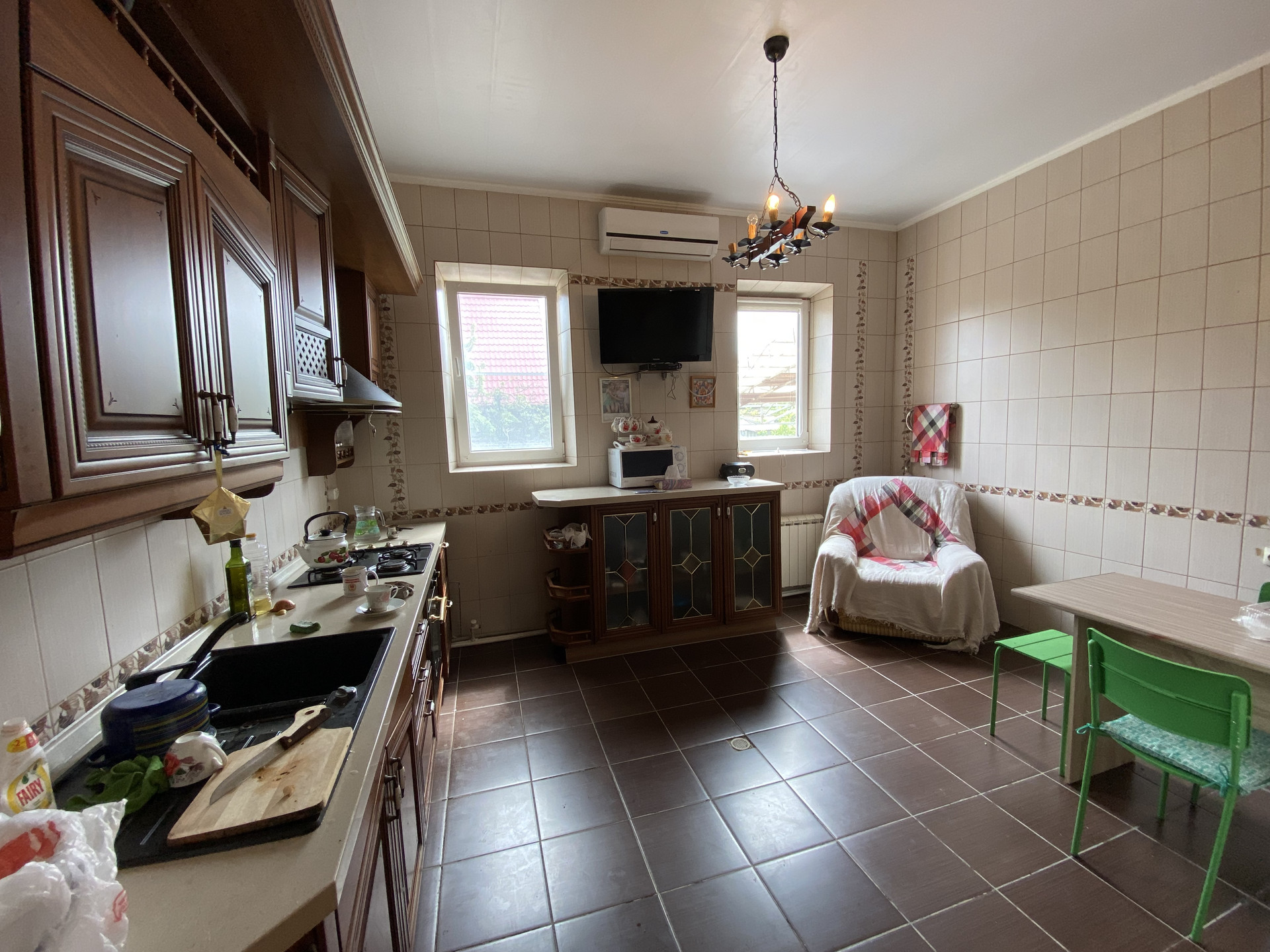 В доме 4 изолированные комнаты, гостиная, 2 кухни, прихожая, коридор, котельная, 2 сан. узла..