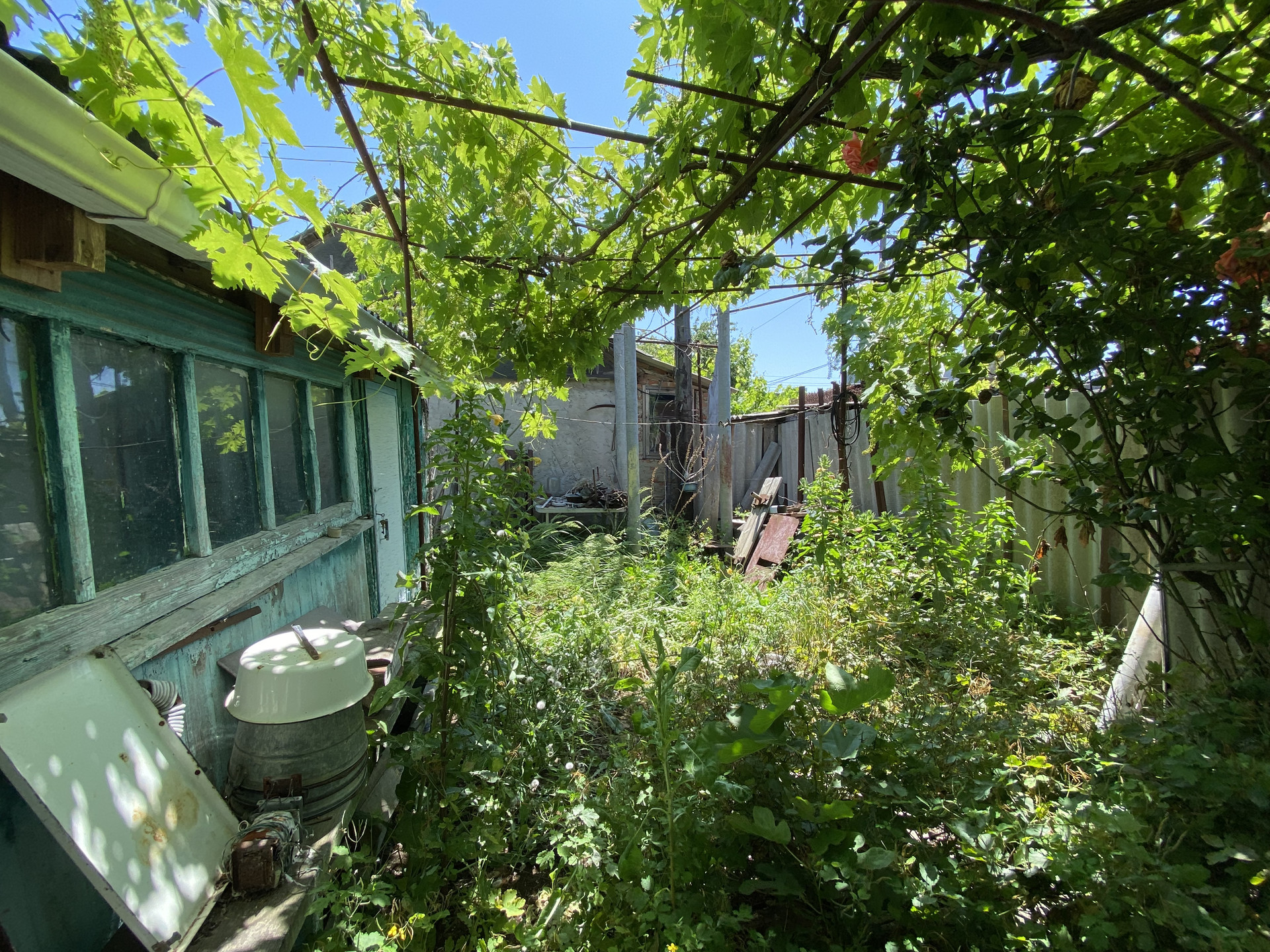 Летняя кухня, в которую заведено электричество, есть подвал. Территория летней кухни огорожена забором. Растёт виноград. Есть сарай с подвалом.
