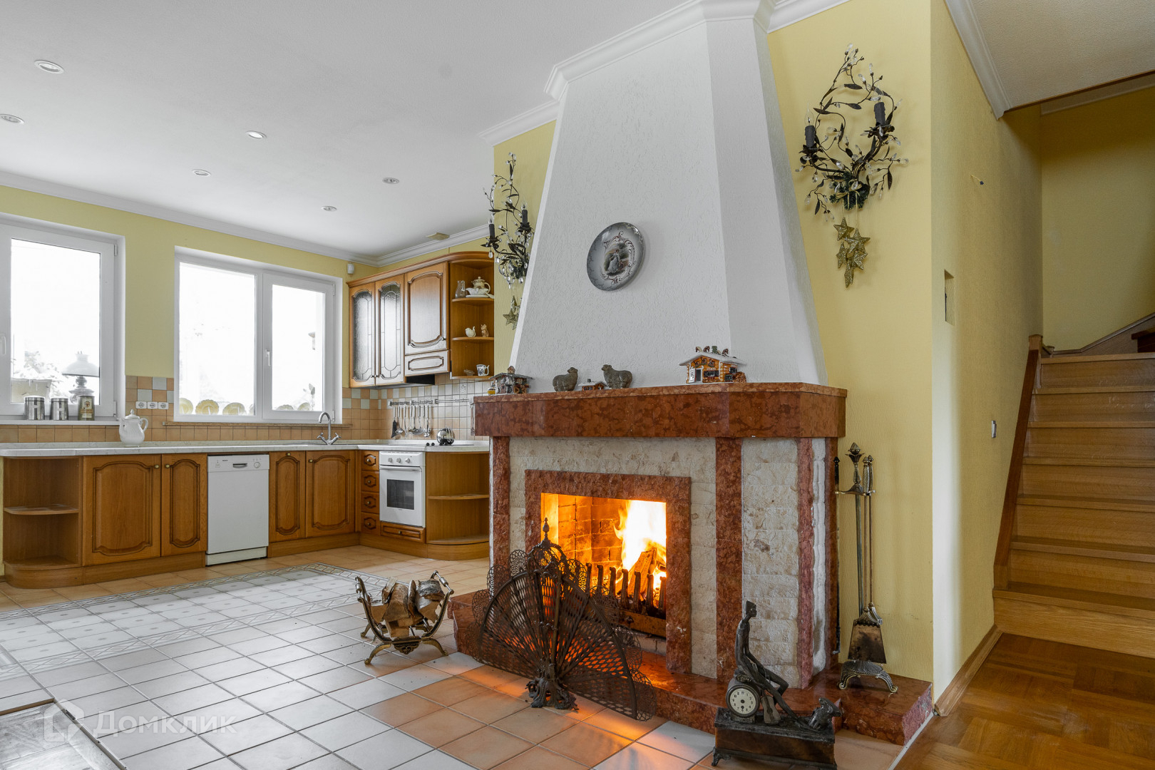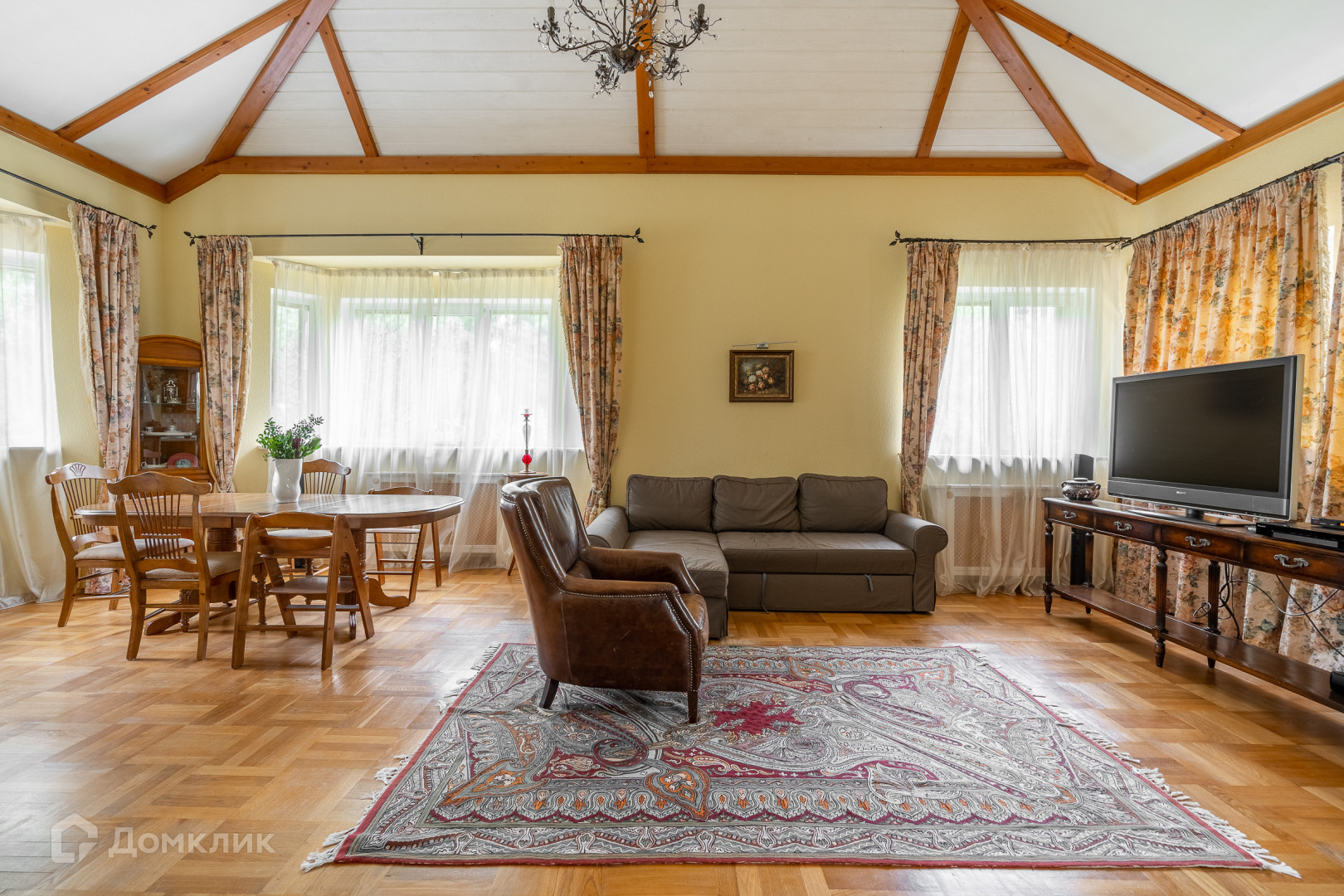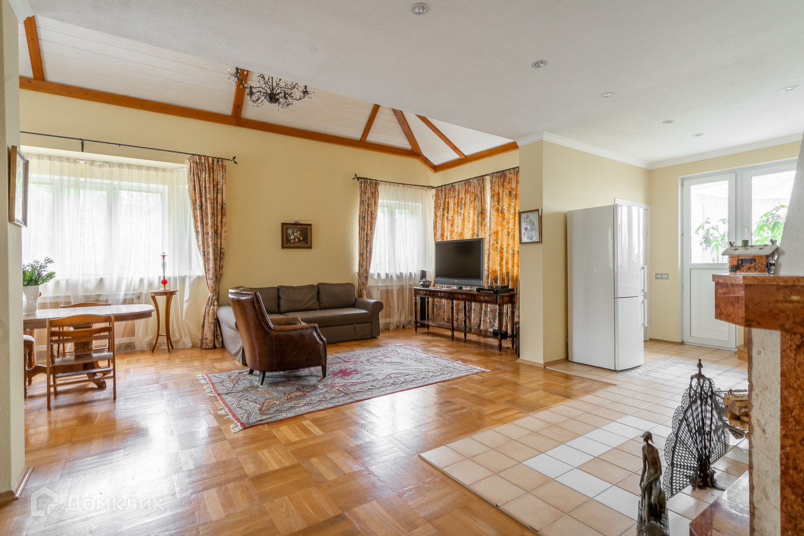 Высота потолков 3 м, а в зоне гостиной до 6 м.