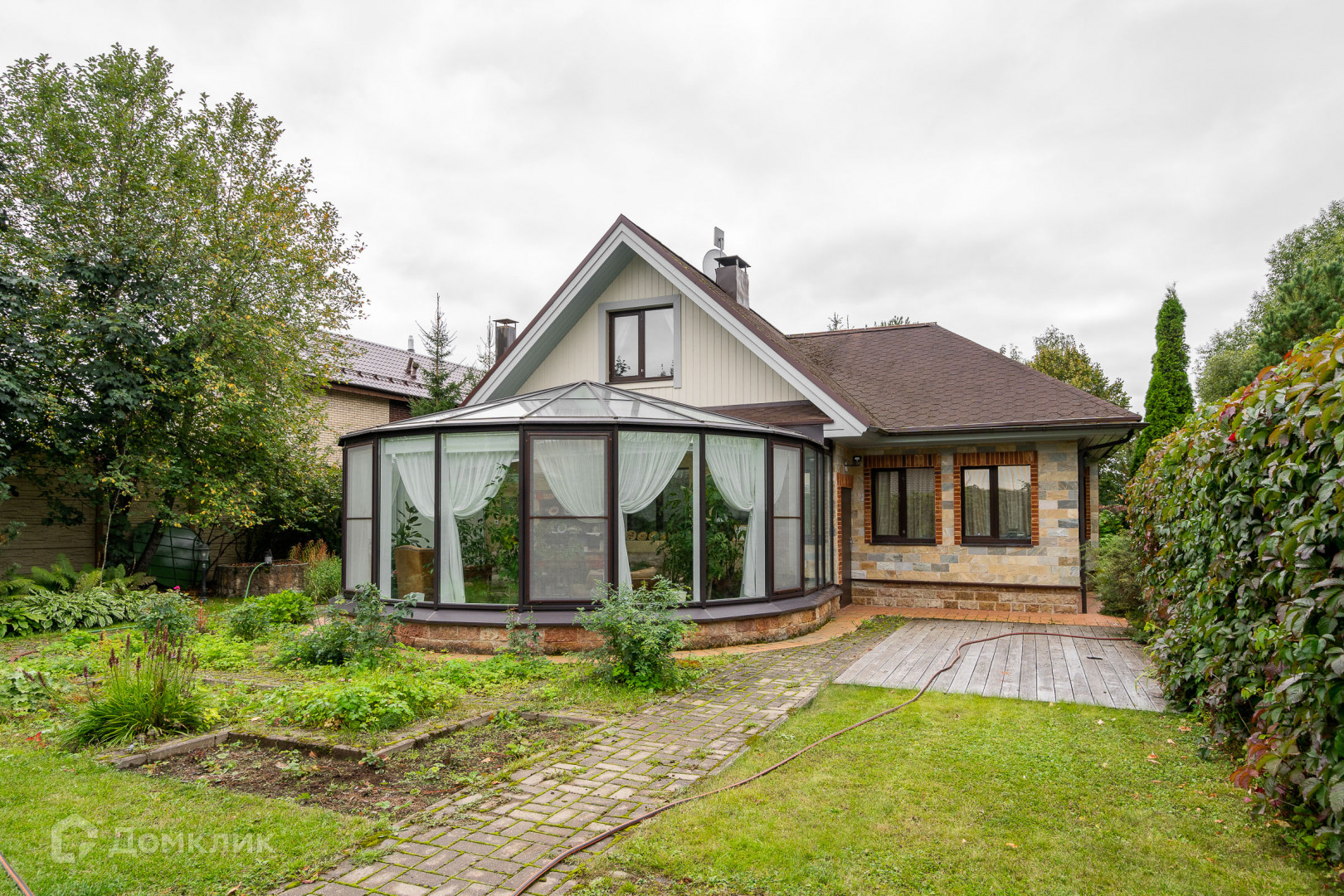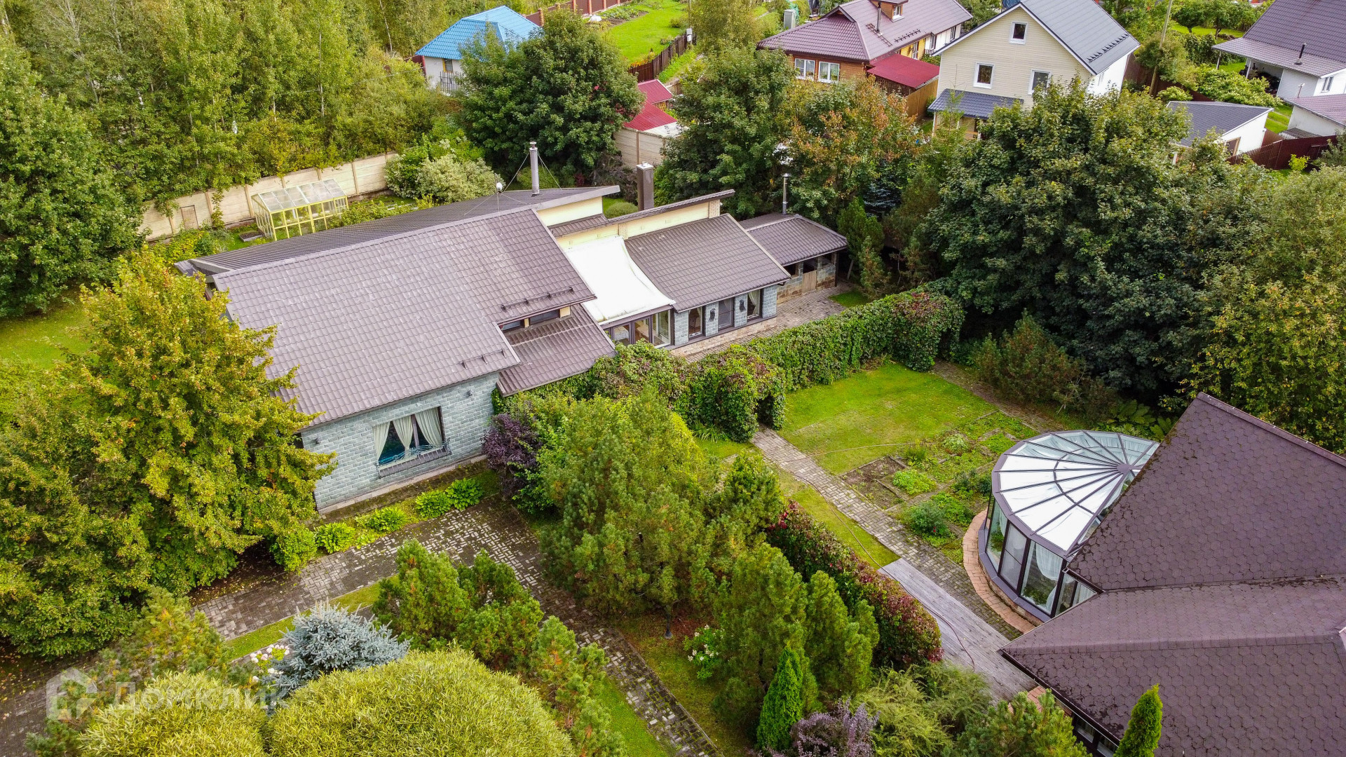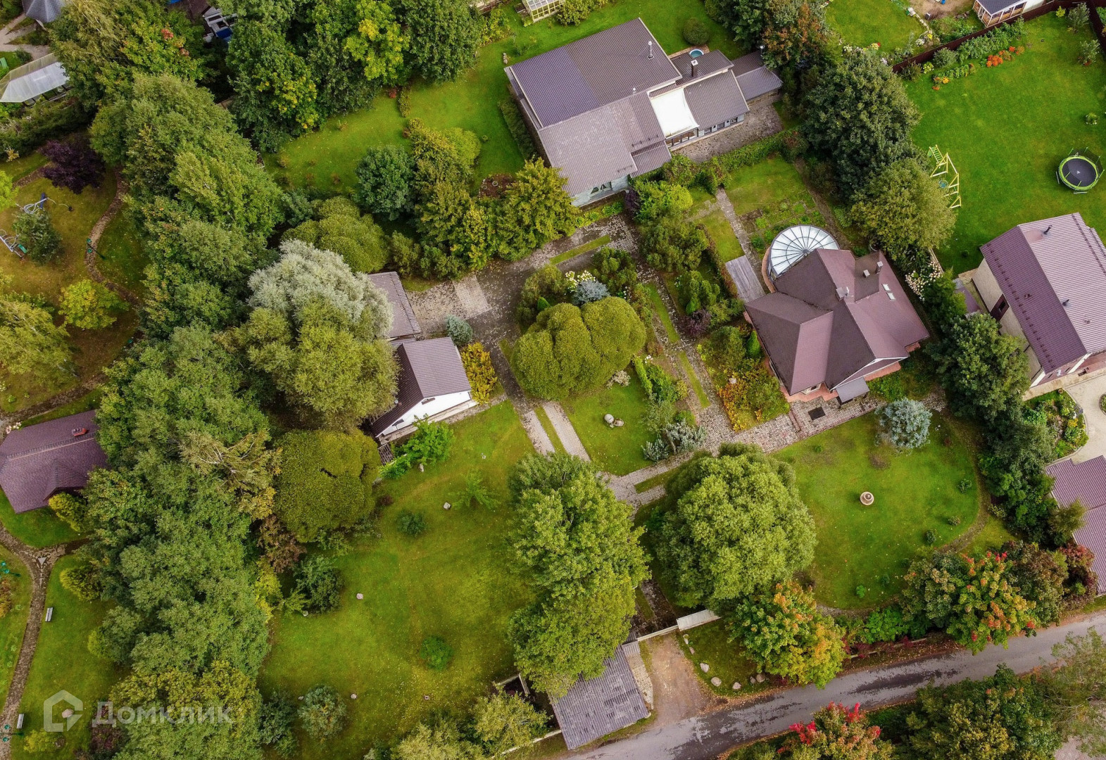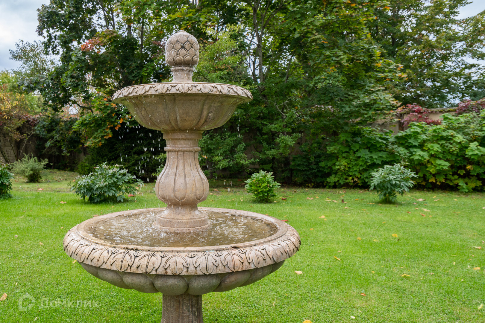 Вся территория дренажирована, проложены дорожки эко-плиткой, установлены светильники, сделан газон, плодоносят яблони, сливы, малина, смородина, виноград, теплица, клубника. Уютные уголки с декоративными кустами, клумбы с сортовыми розами и гортензией. Обвитые виноградной лозой арки. Действующий фонтан на лужайке. Всё сделано с большым вкусом и любовью.