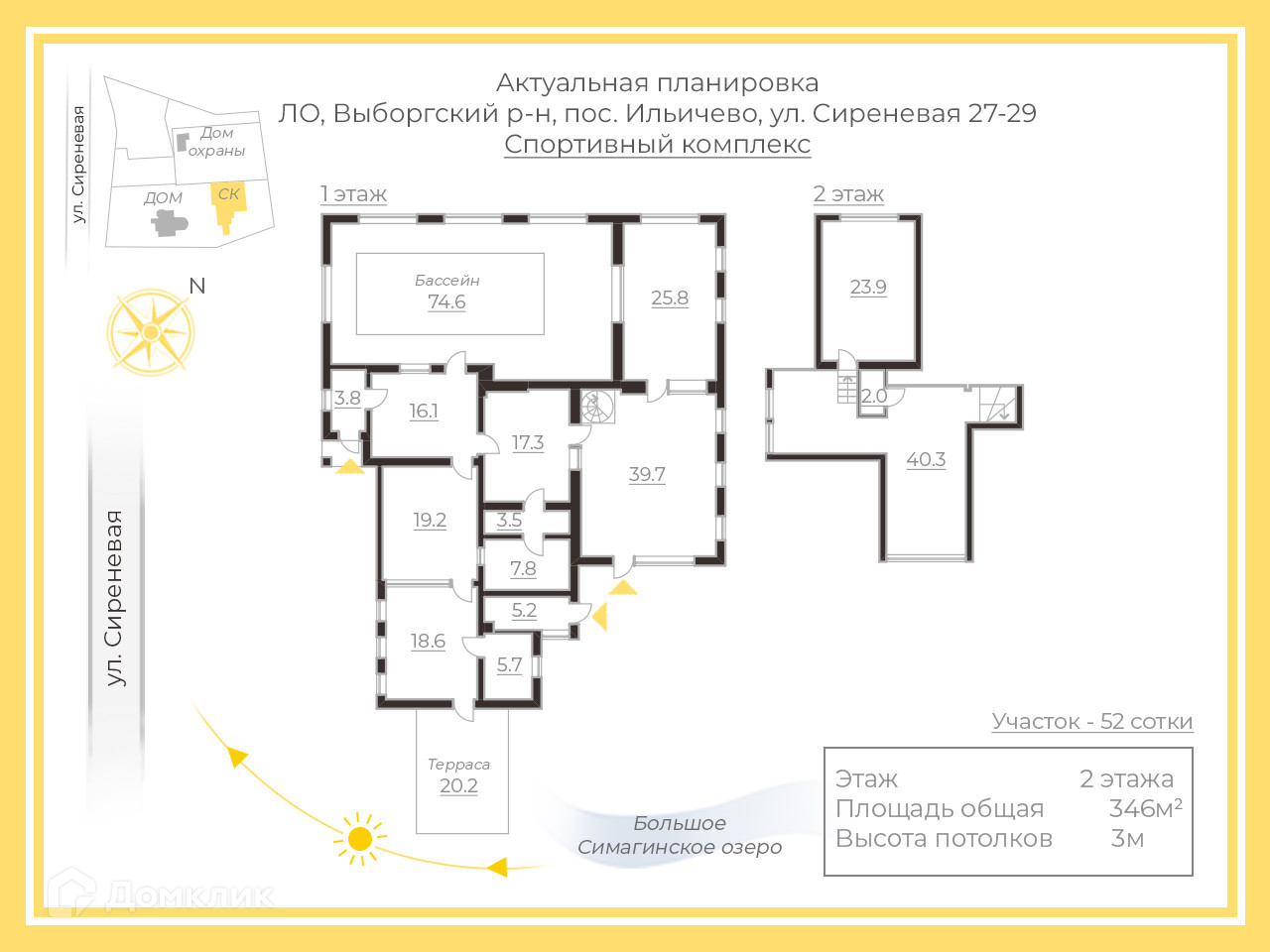 2) Спортивный комплекс – 346,3 кв. м., 2 этажа.