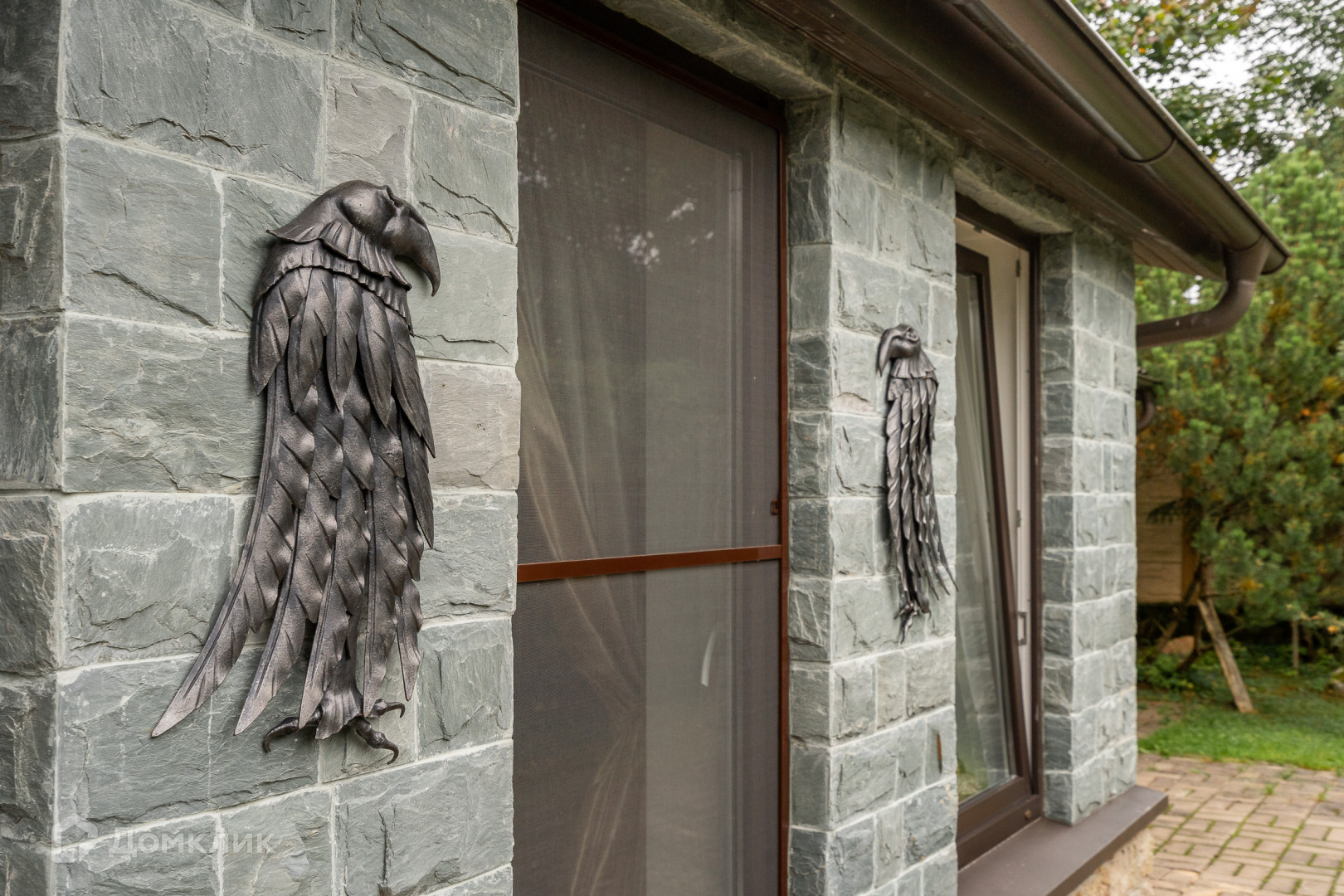 Фасад украшен художественными кованными элементами и скульптурами кузнеца Вячеслава Николаева(члена Союза художников).